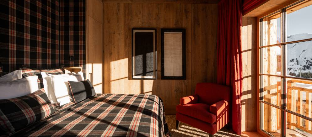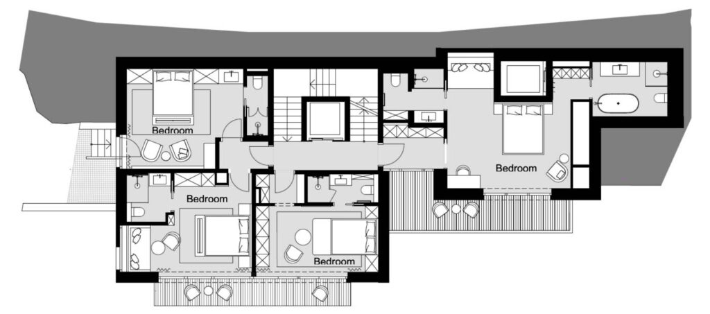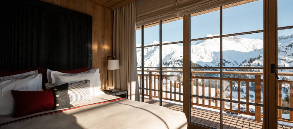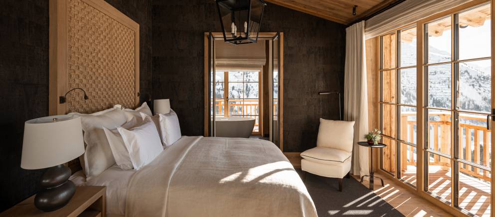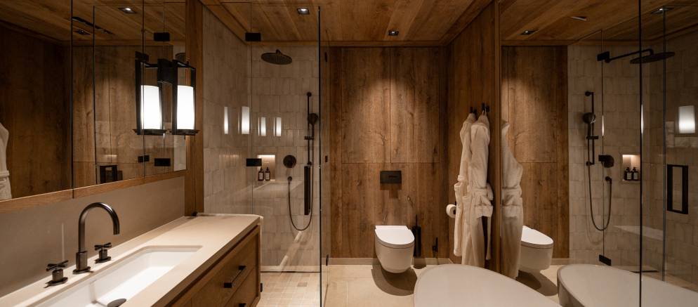 The chalet has 2 master suites and 5 bedrooms, with the bedrooms arranged across the top two floors. All rooms have their own distinct character and charm, with en-suite bathrooms, panoramic views and lots of natural light.