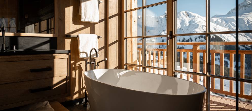 Down on the lowest floor of the chalet is no doubt where you will spend numerous hours relaxing in the wellness area. Enjoy a state-of-the-art gym, sauna and steam room, plus of course the atmospheric indoor swimming pool with views of the Rüfikopf. Treatments and massages in the dedicated massage room can be scheduled upon request.
