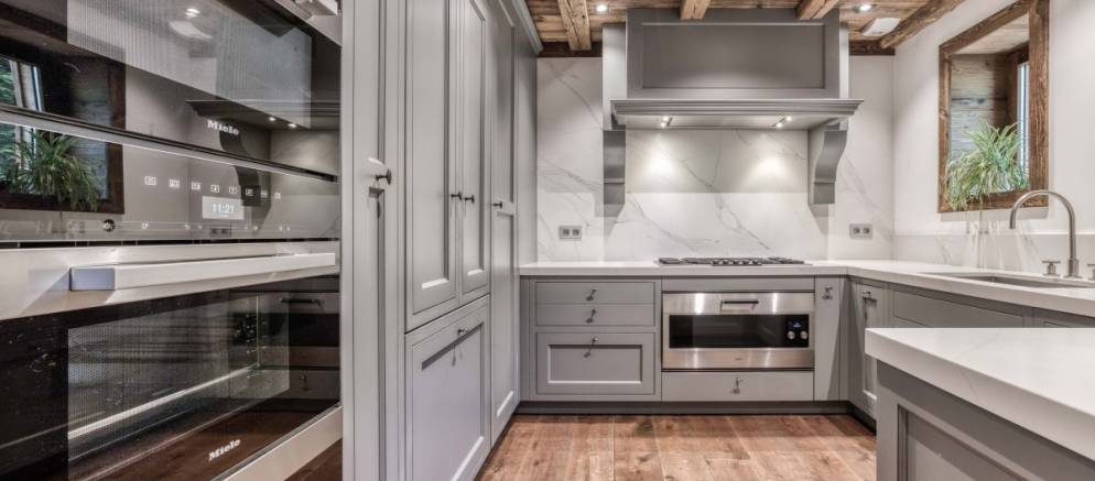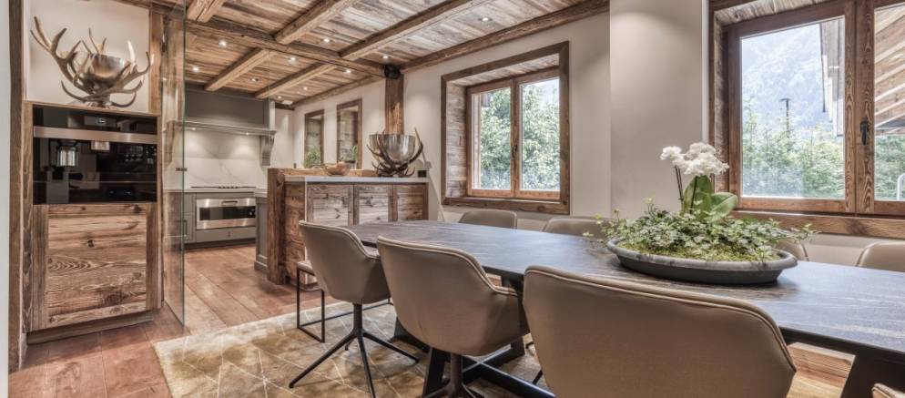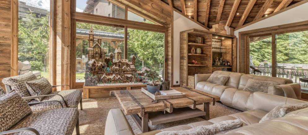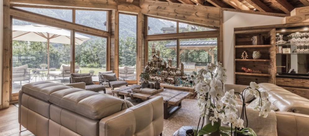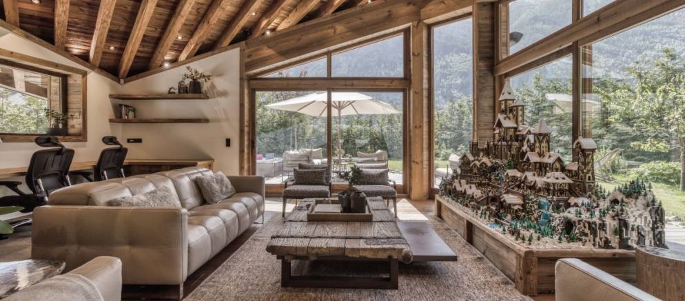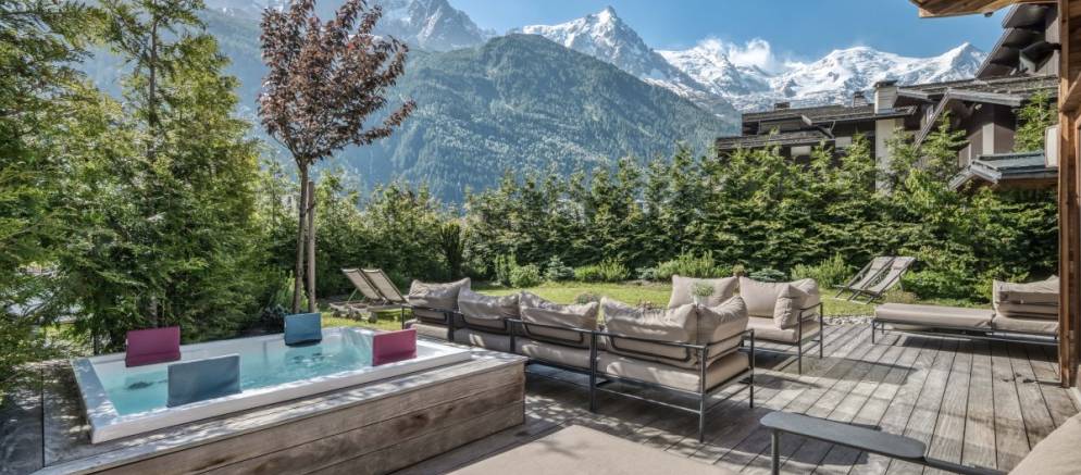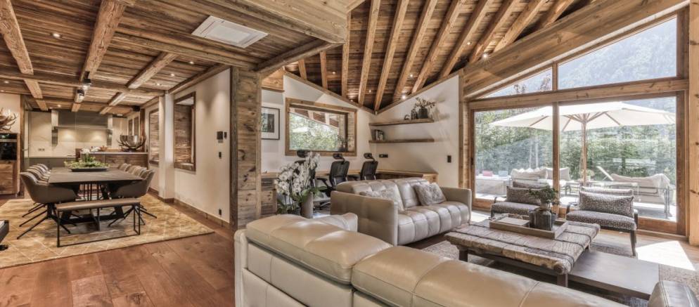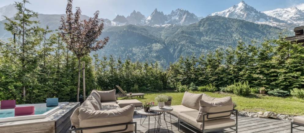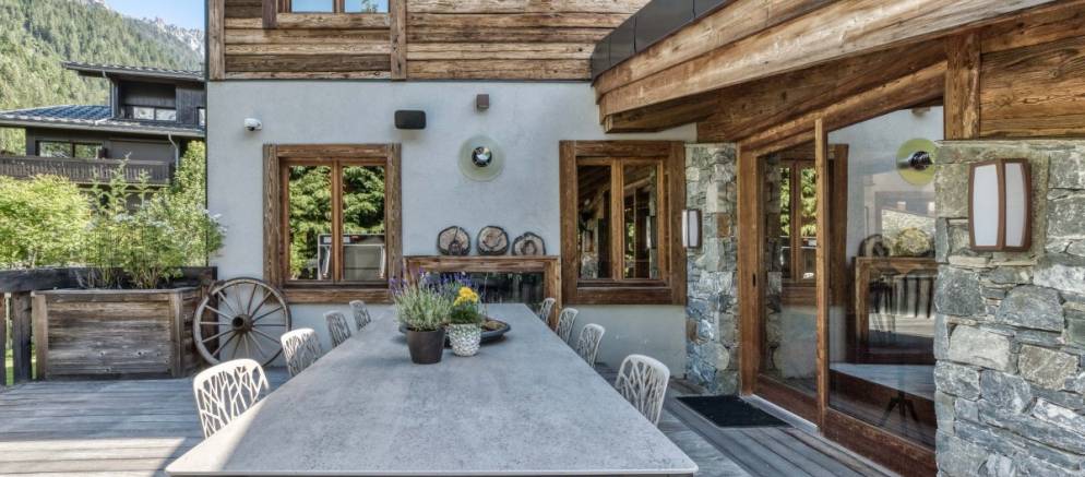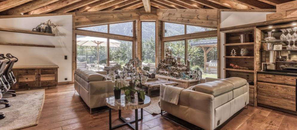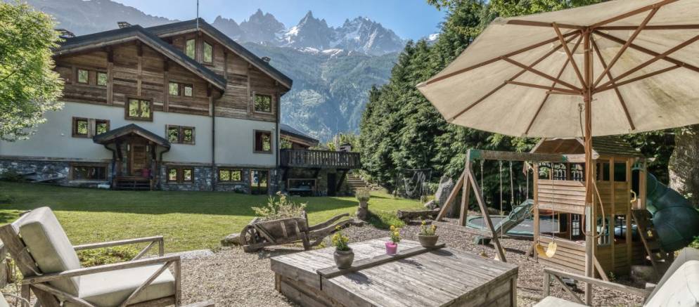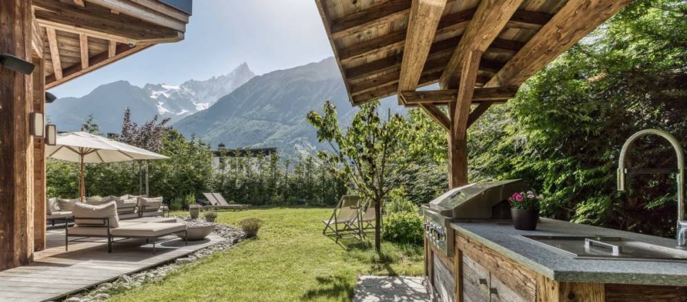 Outside the chalet has fantastic gardens along with a playground with swings and slides for the younger kids and a huge in-ground trampoline, that make this chalet a great choice for families. For alfresco dining there is an impressive outdoor kitchen facing the Mont Blanc mountain range.