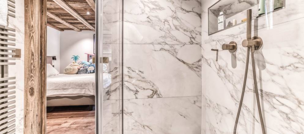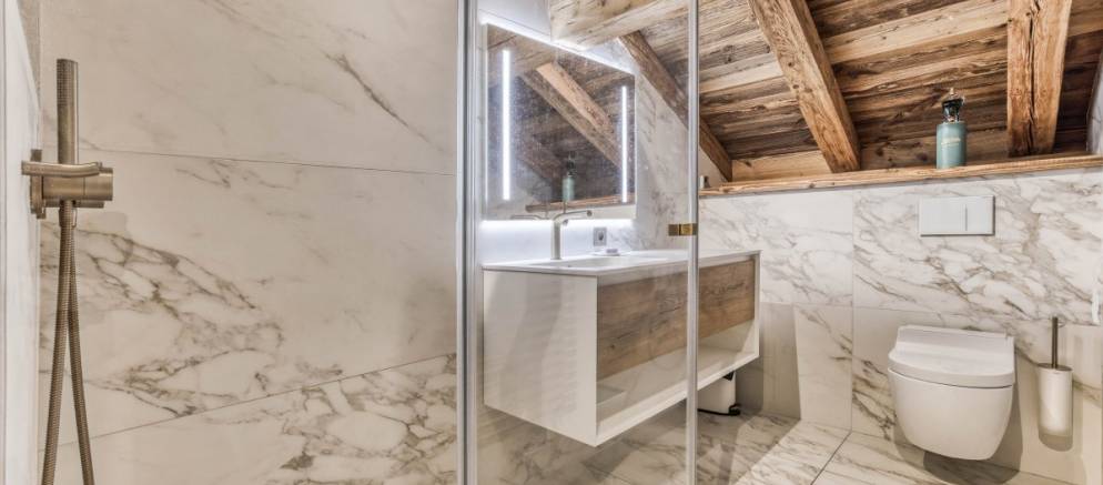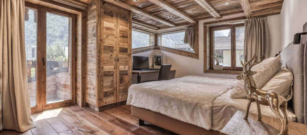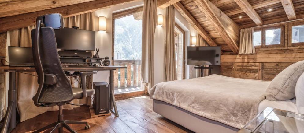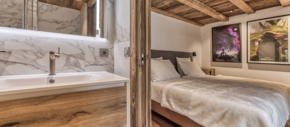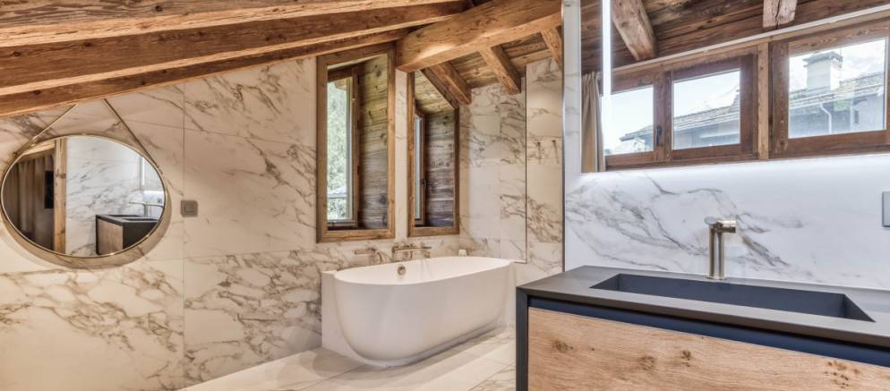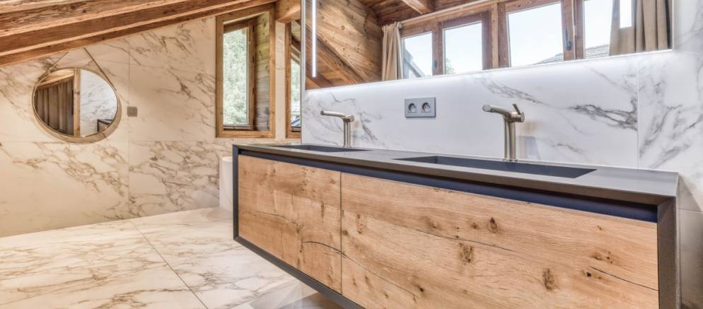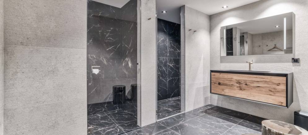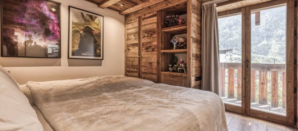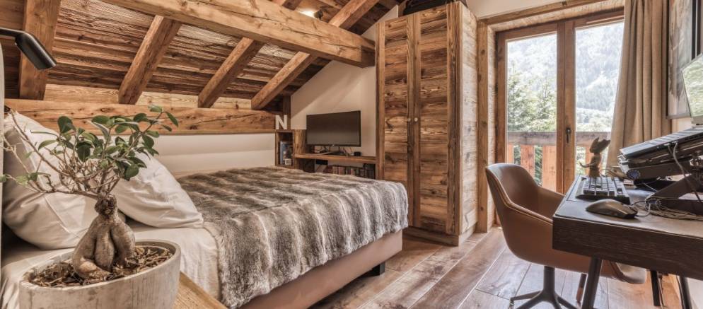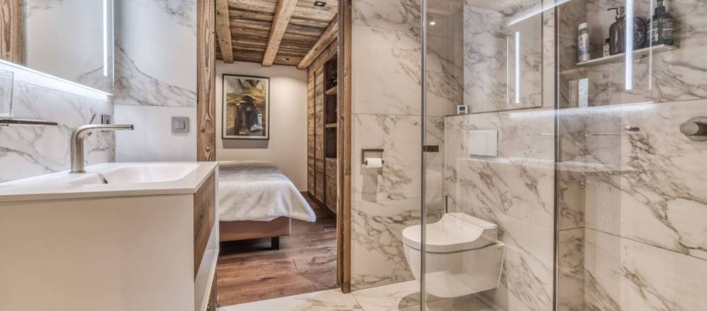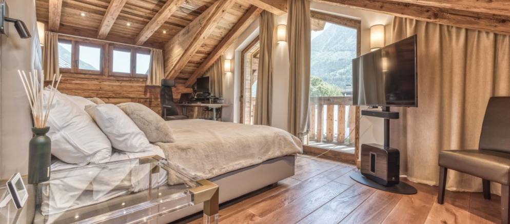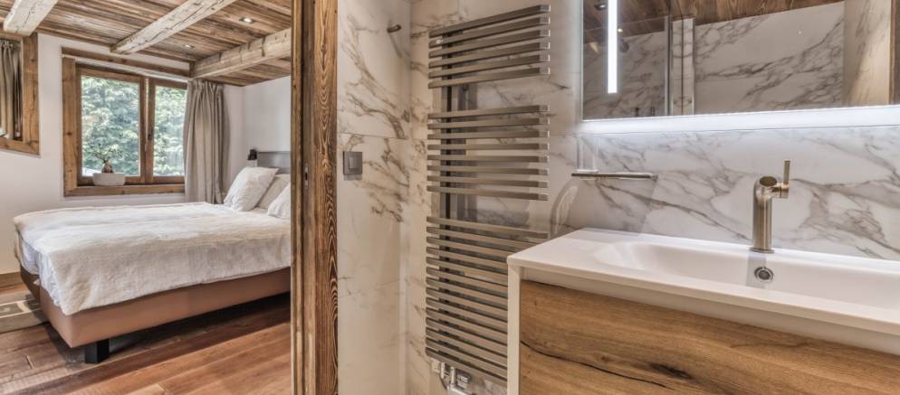 The bedrooms are spread between three floors, with the first two en-suite bedrooms on the lower ground floor along with the cinema room. The second floor of the chalet has 4 bedrooms and 3 bathrooms, with a large balcony connecting the 3 south facing bedrooms. The spacious master suite is located on the third floor with a beautiful vaulted wooden ceiling and balcony with fantastic views over the mountains and Chamonix town.