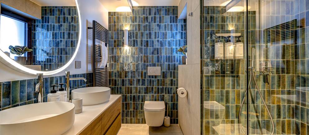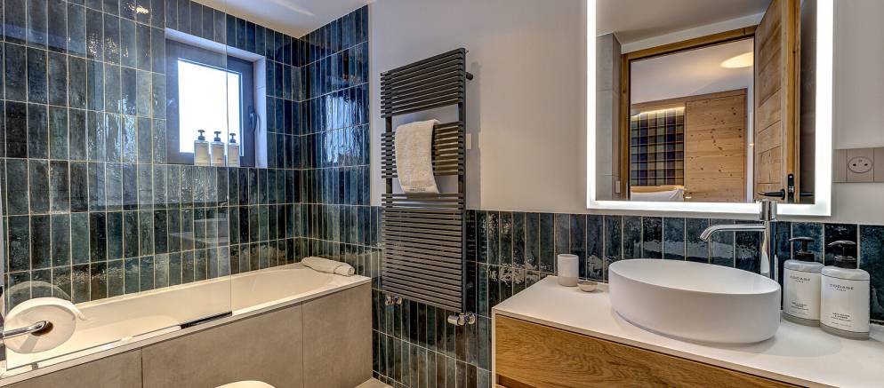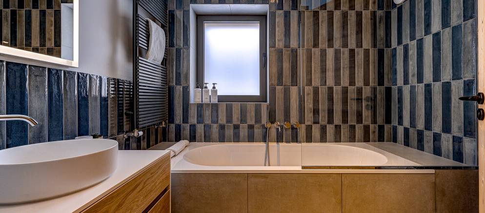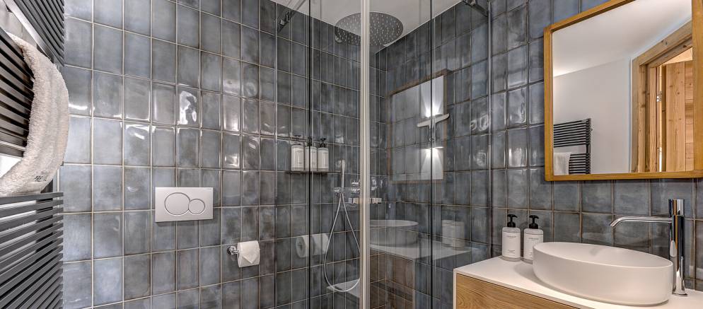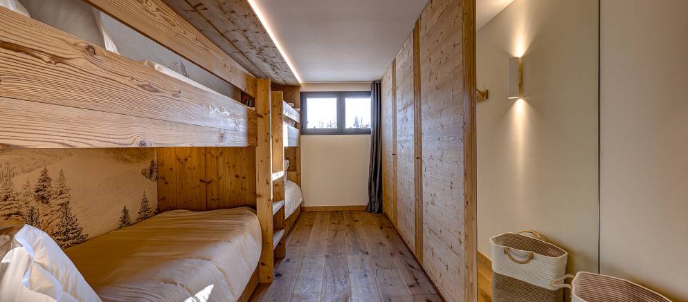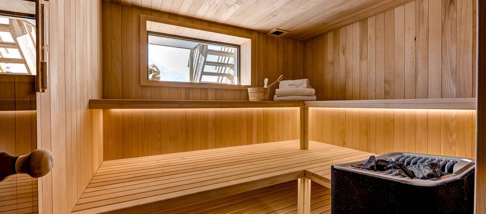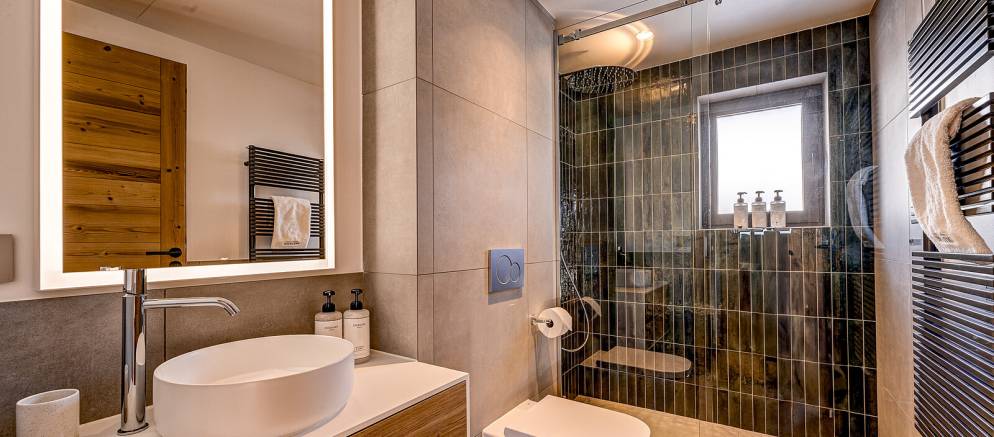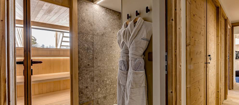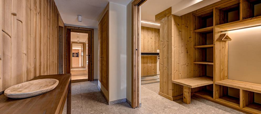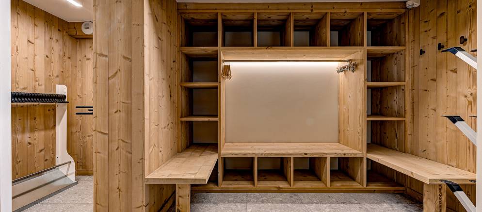 The chalet is also equipped with a ski room with boot heaters, bike storage, and laundry room with washing machine and tumble dryer. There is also an integrated single garage and exterior parking for up to 4 cars, along with an EV charging point.
