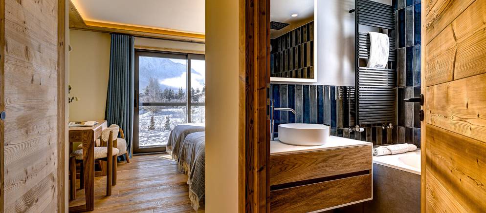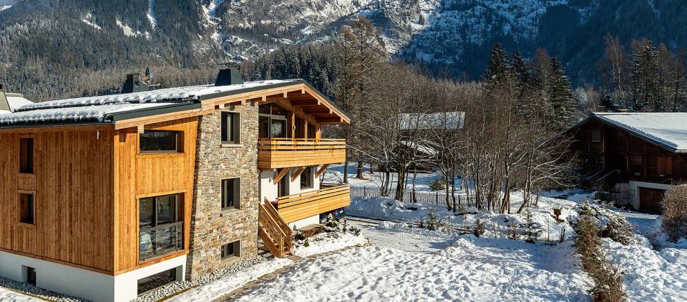 Chalet Josephine is situated in the residential area of Les Bois in the Chamonix valley. The tranquil settings balances being a very short drive from the lift station to the Flegere ski area, the Chamonix Golf Course and the village of Les Praz where there are a handful of excellent restaurants and bars. This spacious chalet combines high-end finishes and beautiful interior design.