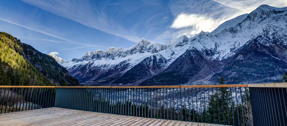 Le Chalet Mont Blanc is a stunning luxury chalet facing the mighty Mont Blanc mountain range. Located in a south facing slope, the chalet sits in private grounds of more than 2½ acres and surrounded by beautiful mountain scenery. The chalet’s location boasts more sun than anywhere else in the Chamonix Valley.