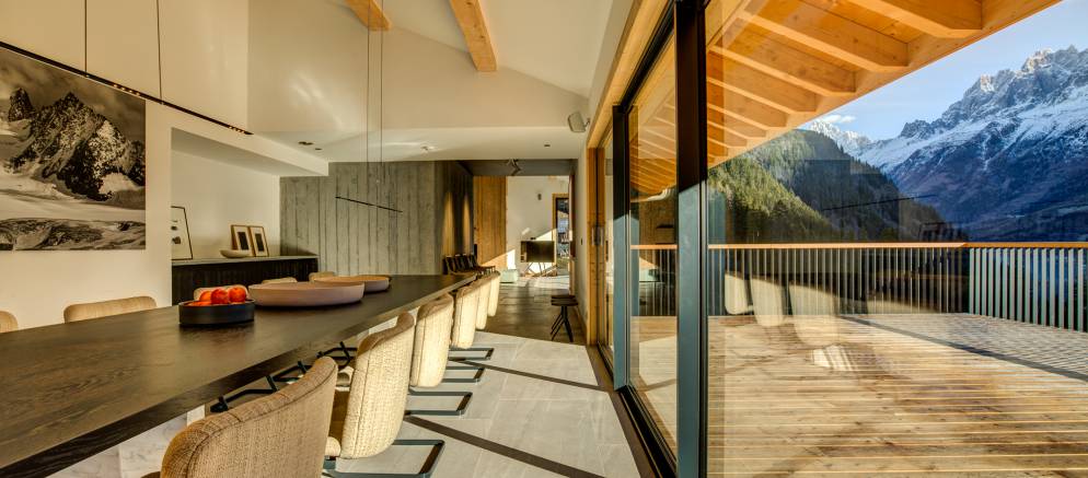 Sleeping 24, there are 3 master suites, 8 executive level bedrooms and a studio bedroom. Each room is south facing and features either a balcony or terrace and all face Mont Blanc. The rooms are finished with en-suite bathrooms, smart TV, B&O Bluetooth music stations and laptop safes.