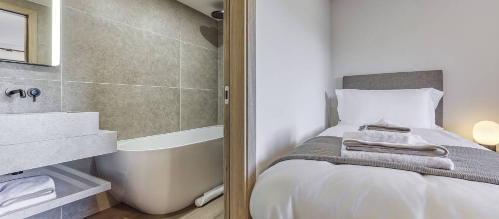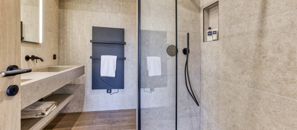 Taking the stairs up to the first floor and there are a further two double bedrooms both with en-suite shower rooms and balconies. Taking the stairs down from the ground floor and there is a private sauna where you can unwind after a day on the slopes of the 3 Valleys.