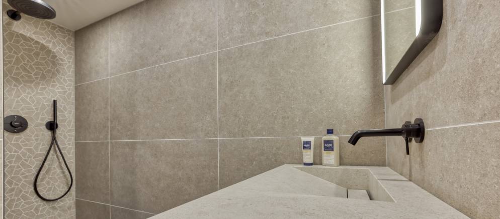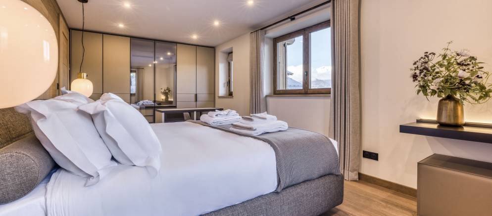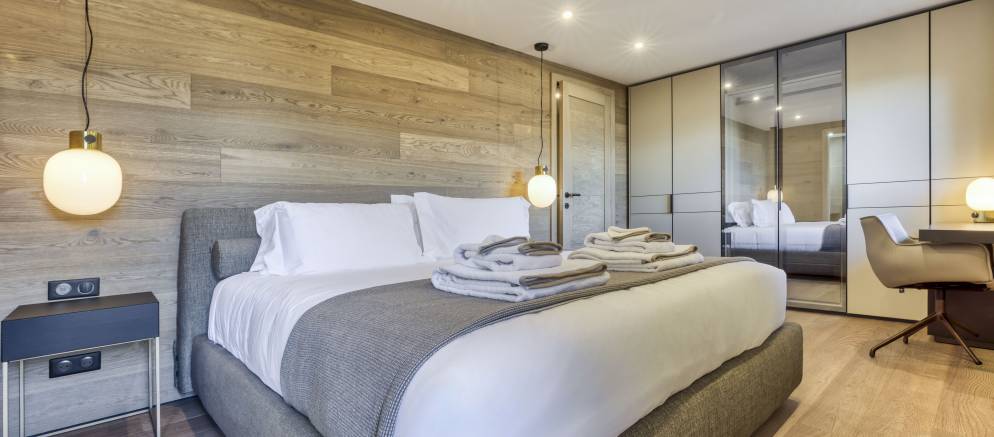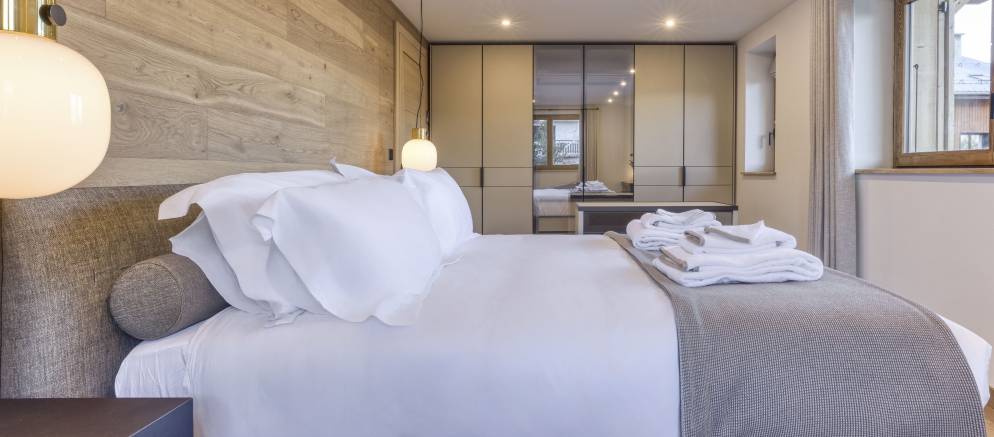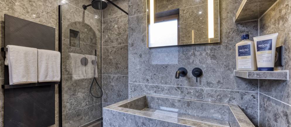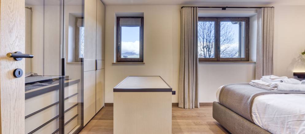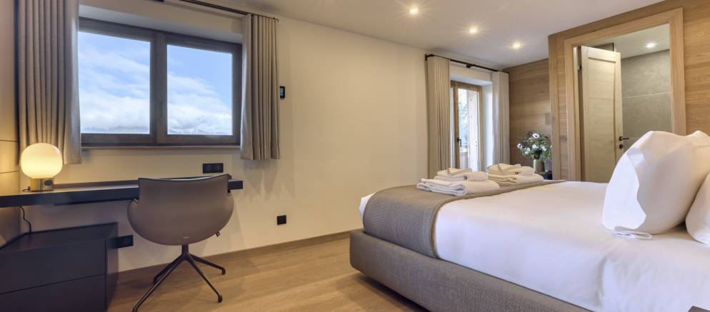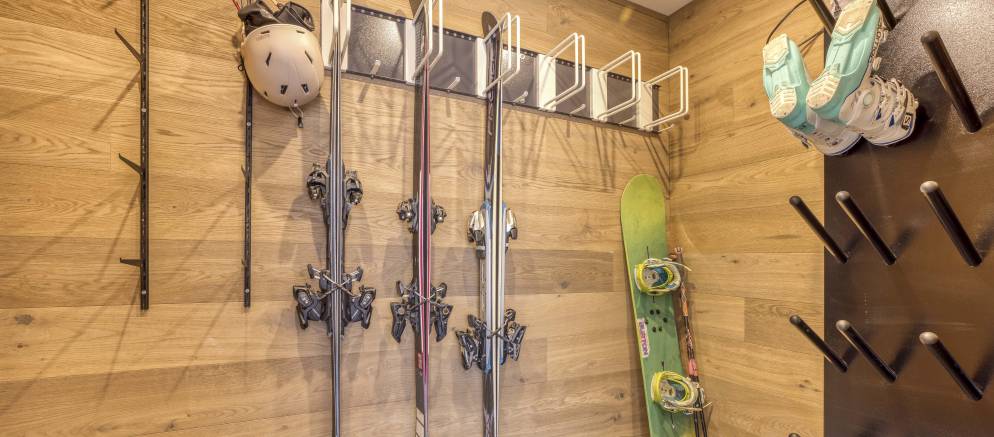 Spread across four floors and 230m2 of floor area, the chalet comfortably accommodates up to 10 guests in five en-suite bedrooms. Entering the chalet on the ground floor there is a ski room for easy storage of your mountain equipment, along with a conveniently located toilet. There are also three bedrooms on this level, two with double beds and the other with either a double or twin beds.