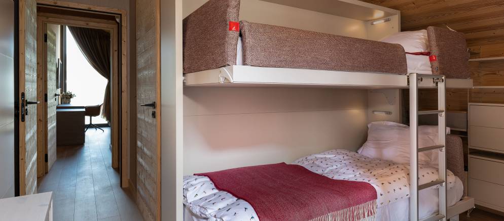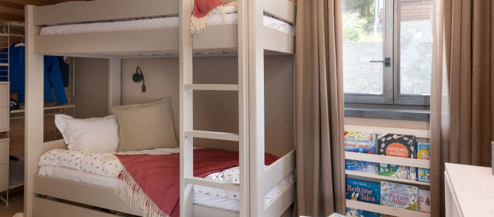 Children’s room with 1 x bunk bed, 2 x fold away bunk beds, and en-suite bathroom. Sleeps 4.