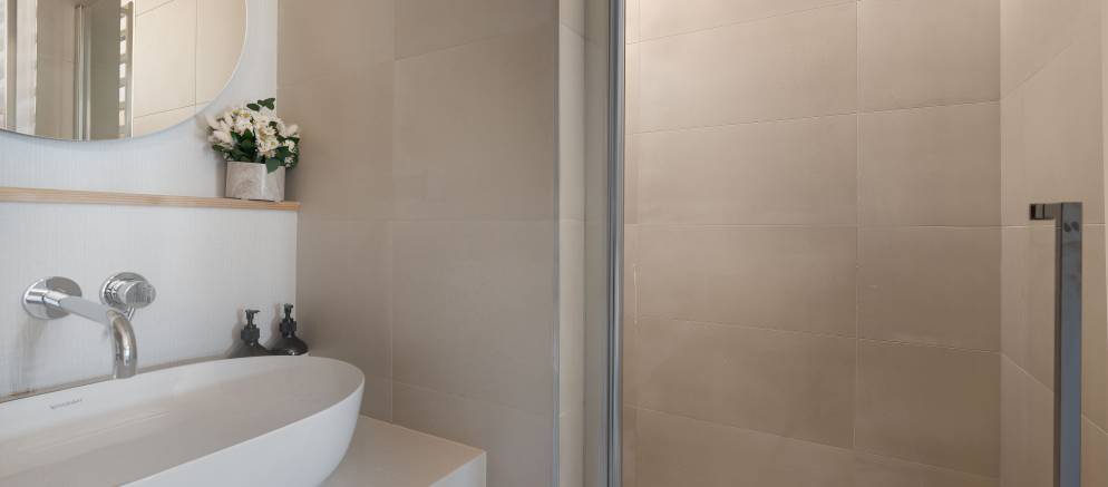 Upstairs on the top floor are three bedrooms, all with en-suite facilities. There are two double bedrooms along with a children’s room featuring bunk beds and 2 fold away single beds that can accommodate up to four in total. The final bedroom is on the entrance level and has a fold down double bed, that when stowed in the wall converts to an office space with table. This room has a private shower room.