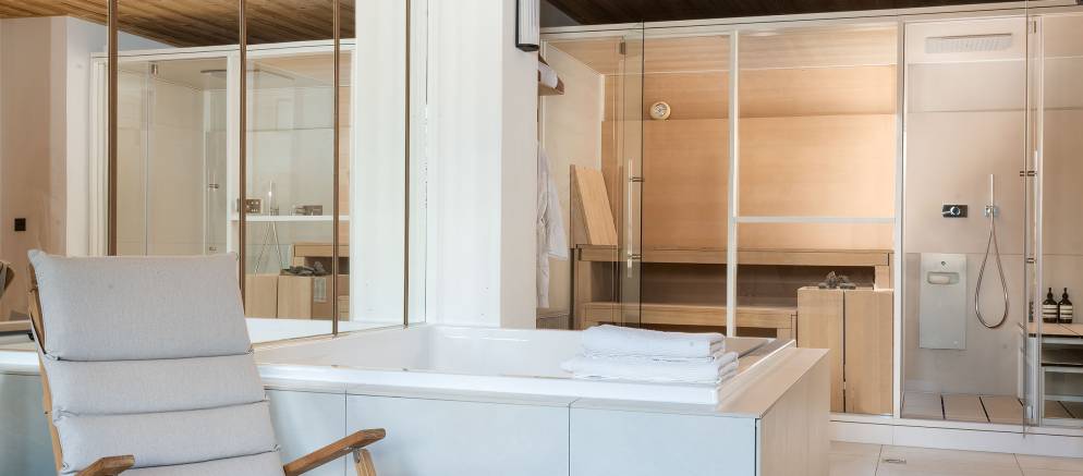 Also on the entrance floor is your private wellness area with a sauna, steam shower cabin, whirlpool bath and seating area with Smart TV. This is a wonderful space and facility to enjoy once back from your day exploring the mountains.