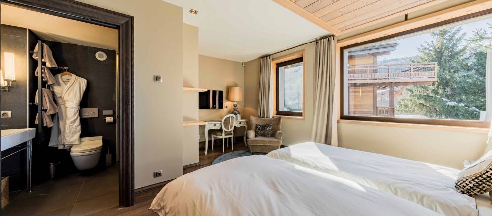 Sleeping up to 14 guests, the chalet has 7 bedrooms and can accommodate groups looking for a large chalet in Courchevel. Each suite, decorated in a calming and natural style, features it’s own en-suite bathroom.