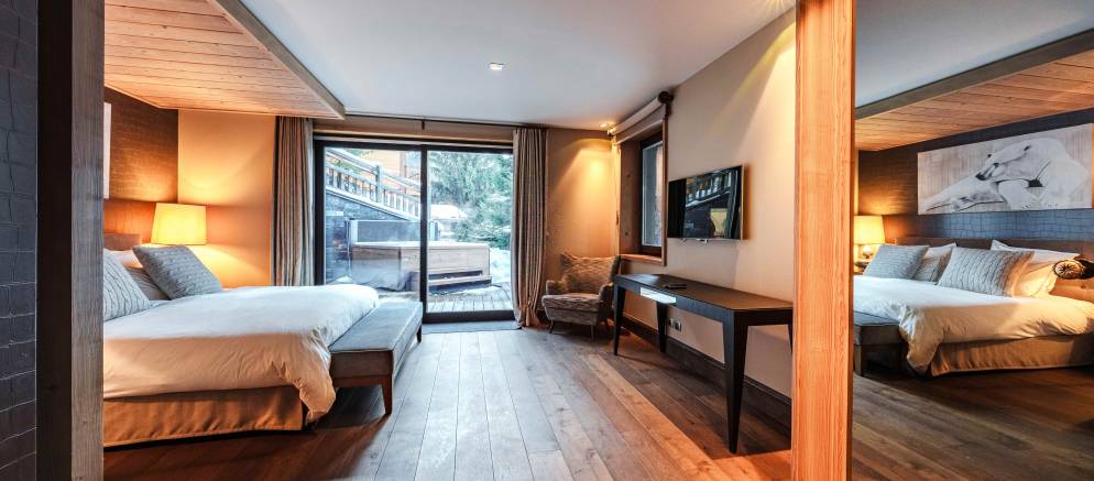 The wellness area features numerous ways to unwind in a luxurious après ski style, with a sauna and steam room whilst outside is an inviting hot tub – the perfect place to enjoy a chilled glass of champagne following a day of skiing in world famous Courchevel.