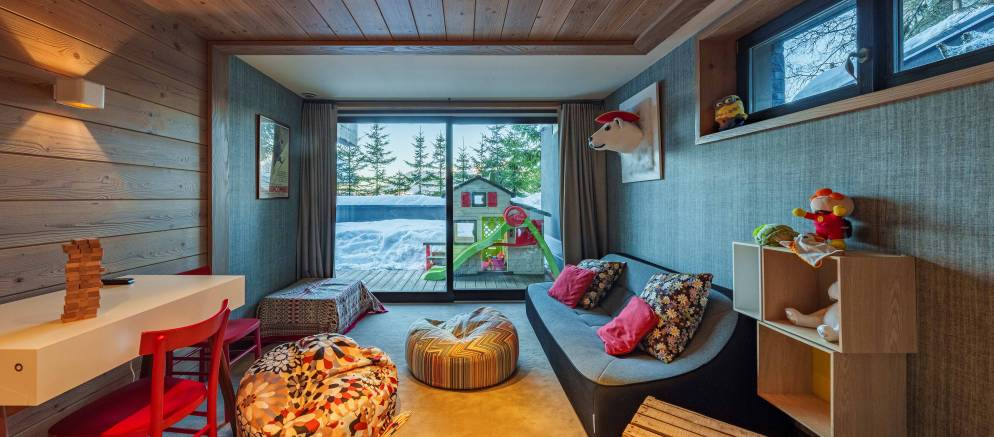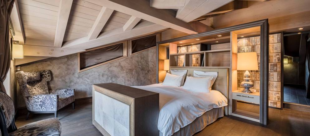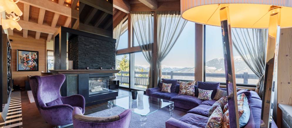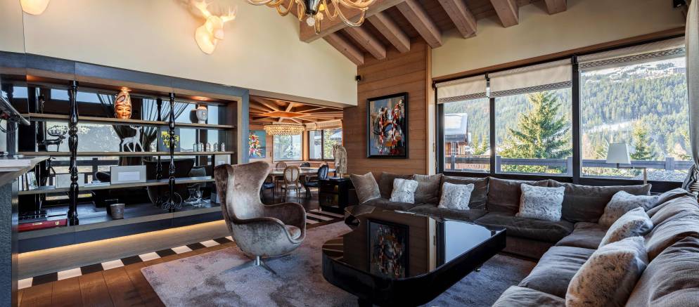 The chalet is spread over 5 floors with 600m2 of floor space all connected by an elevator. The living area of the property, as with many luxury chalets in Courchevel, is located at the top of the chalet. This allows the open plan lounge area to benefit from vaulted ceilings and double height picture windows that let the natural light flood in.