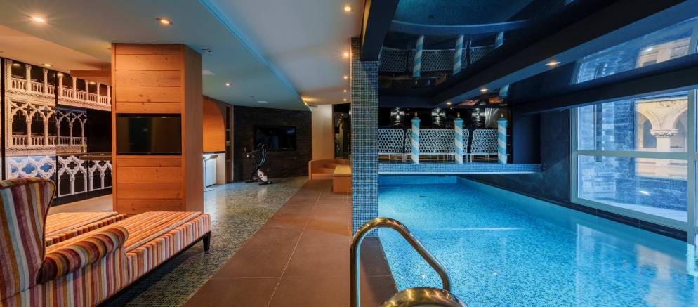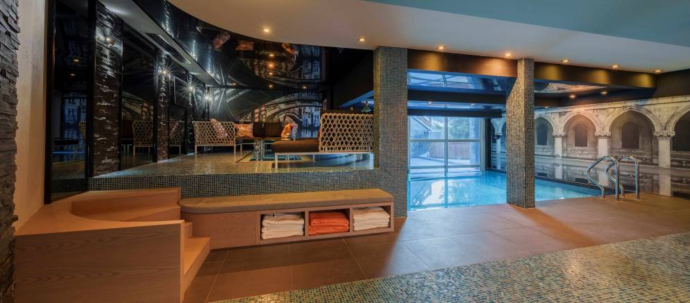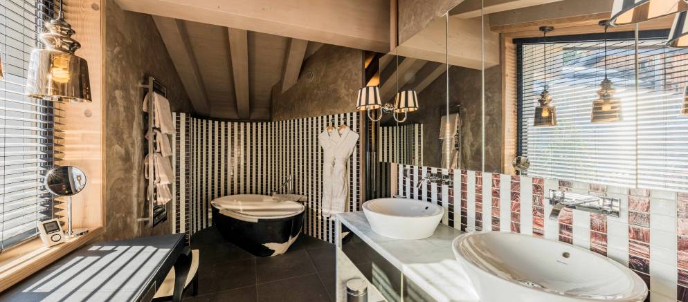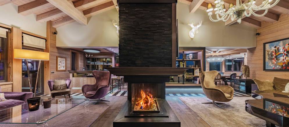 The central feature of this modern luxury chalet is the stunning wellness area, which would not look out of place in a high-end hotel. Decorated with the backdrop of Venetian colonnades, this space is full of decadence and ornate furniture. A large swimming pool connects the property internally and externally allowing you the warmth of an indoor pool or to enjoy the fresh mountain air outside.