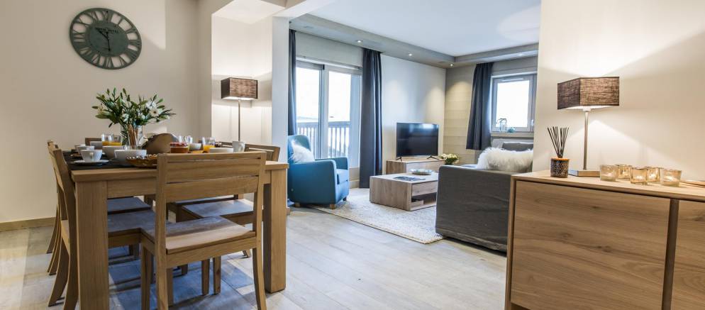 The residence offers six luxury apartments ranging in size from 2 bedrooms sleeping four people to the stunning duplex penthouse sleeping up to 11 people. The apartments all have a modern and well-furnished interior to make for a very comfortable holiday in the mountains.