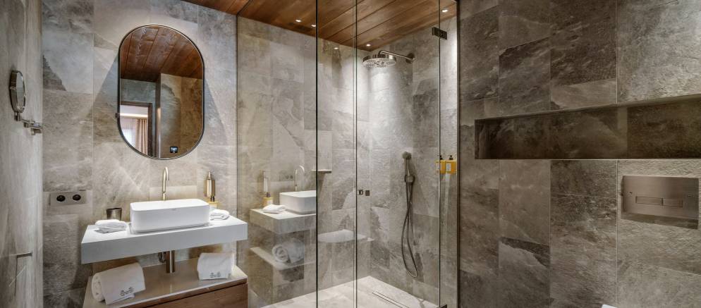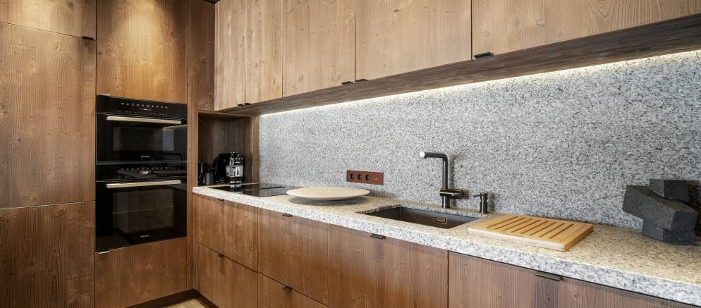 The residence, clad in wood and glass, offers spacious accommodation with a timelessly elegant design that marries traditional chalet architecture and the latest alpine design trends.