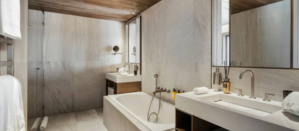 All guests staying in the Atmosphere Residence will enjoy shared access to the on-site wellness area in the residence. Facilities include a 22-metre indoor swimming pool, a sauna and hammam, a fitness/yoga room, and tea bar. Treatments can also be booked in the Cinq Mondes spa.