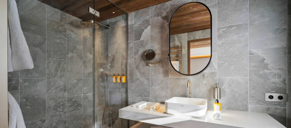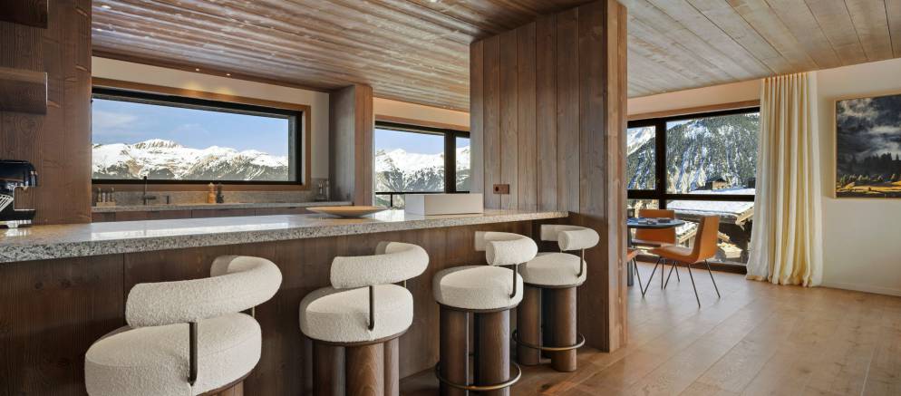 The residence, clad in wood and glass, offers spacious accommodation with a timelessly elegant design that marries traditional chalet architecture and the latest alpine design trends.