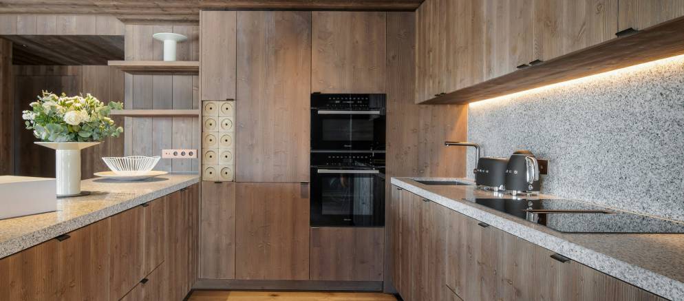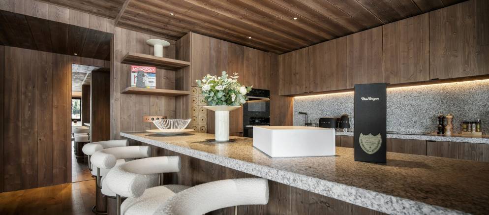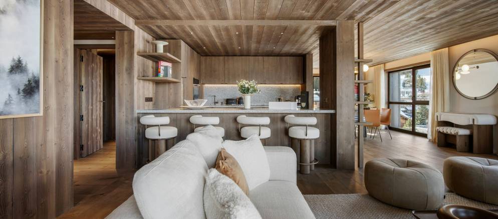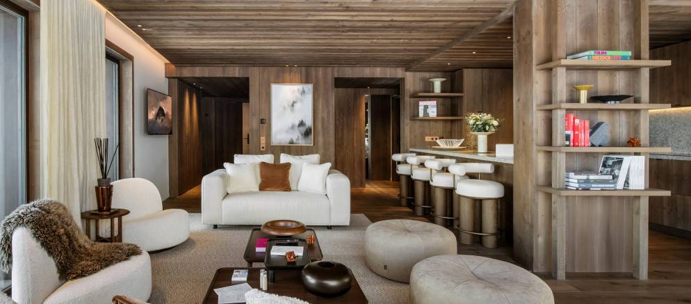 The residence, clad in wood and glass, offers spacious accommodation with a timelessly elegant design that marries traditional chalet architecture and the latest alpine design trends.