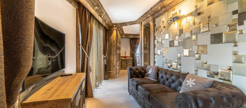 Arranged over four floors and 250m2 of space all connected by both stairs and an elevator, the chalet can accommodate up to 8 guests in five en-suite bedrooms. Entering the chalet on the ground floor via the garage you have the ski room and then the rest of this floor is dedicated to the spa facilities. There is an indoor hot tub, relaxation area with TV, shower, hammam, and massage room.
