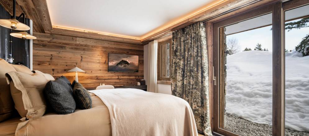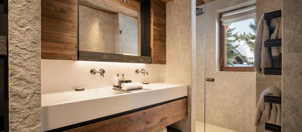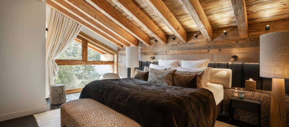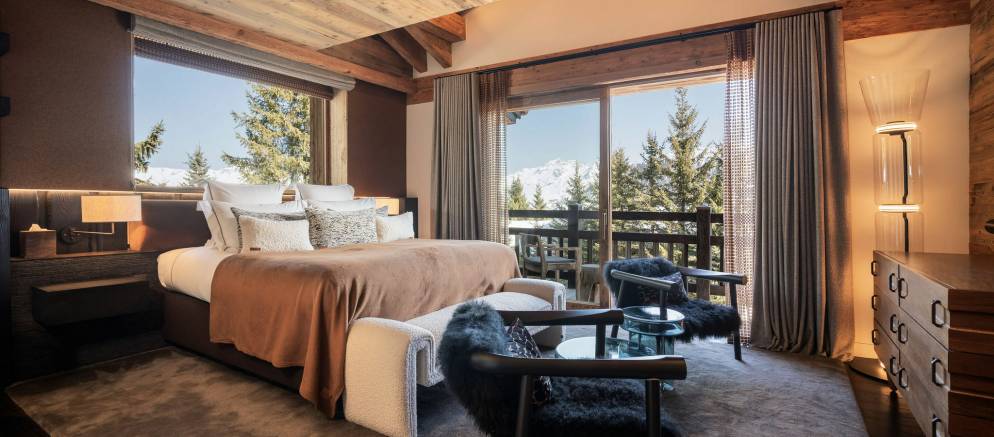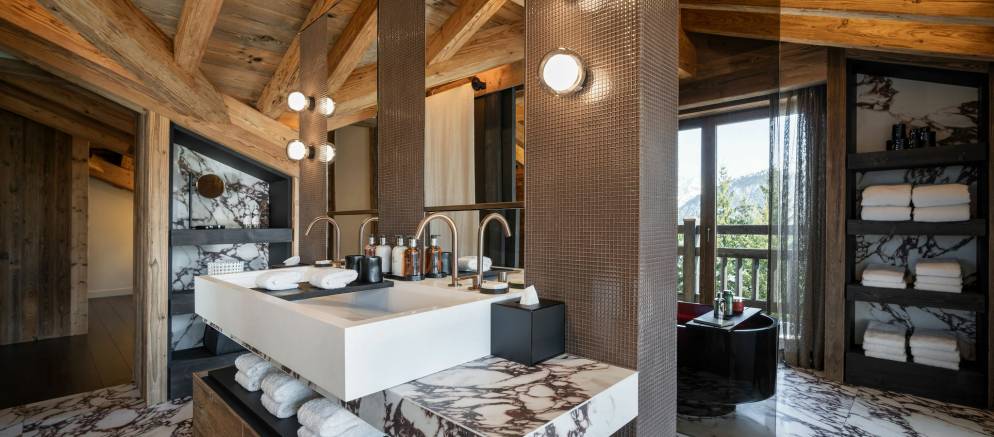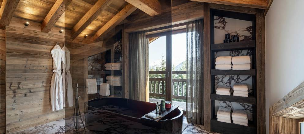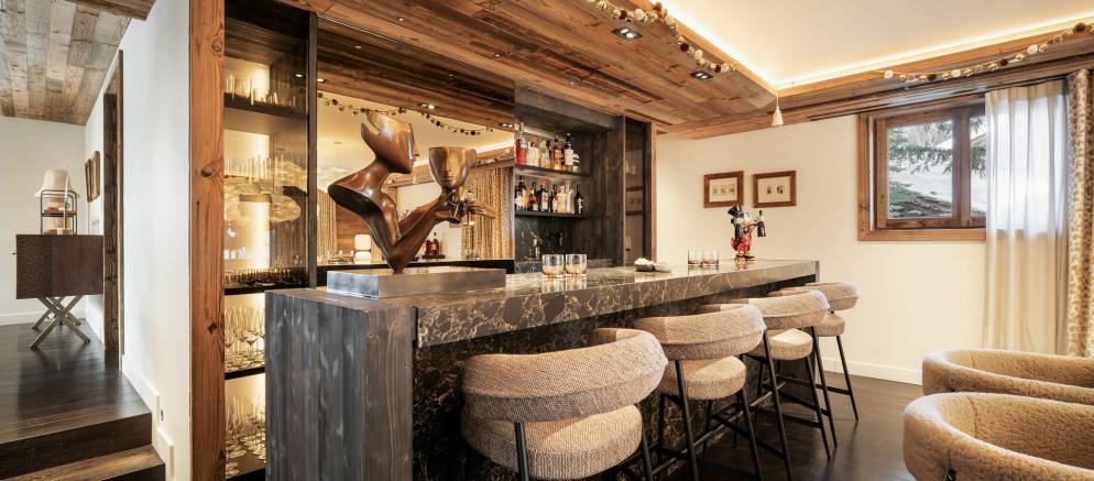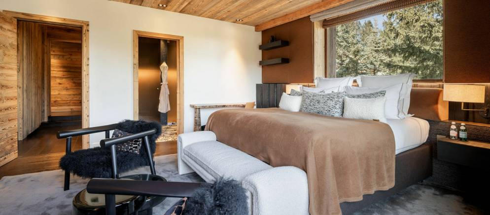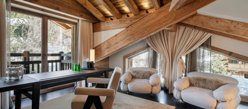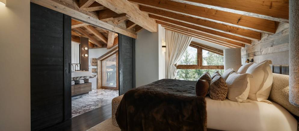 Sleeping up to 15 guests, the eight en-suite bedrooms include luxurious bathrooms and dressing areas. The sumptuous master suite is tucked away in privacy on the top floor and features a sitting area as well as three balconies. A further three double bedrooms on the second floor and four double bedrooms on the ground floor ensure the chalet is designed to host multi-generational families or groups of friends in absolute comfort and privacy.