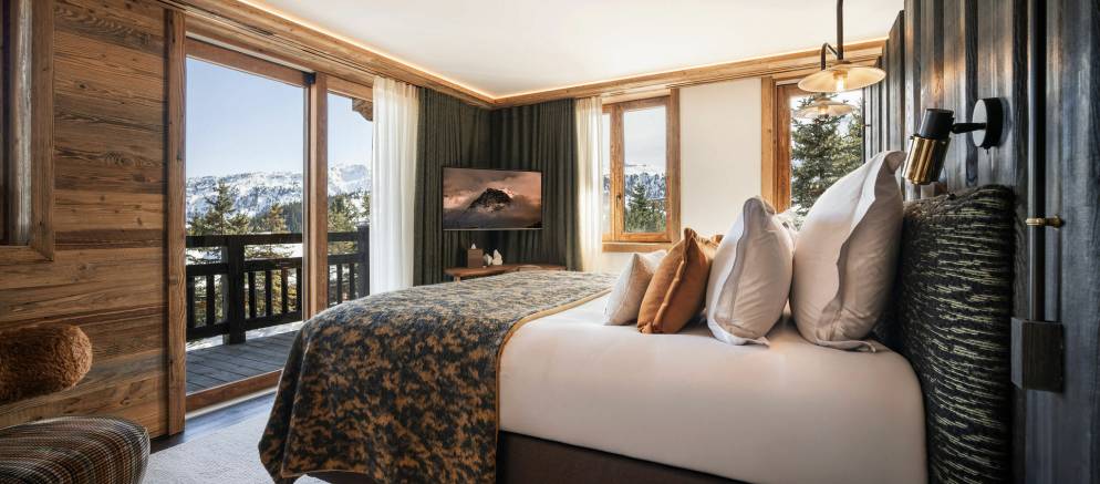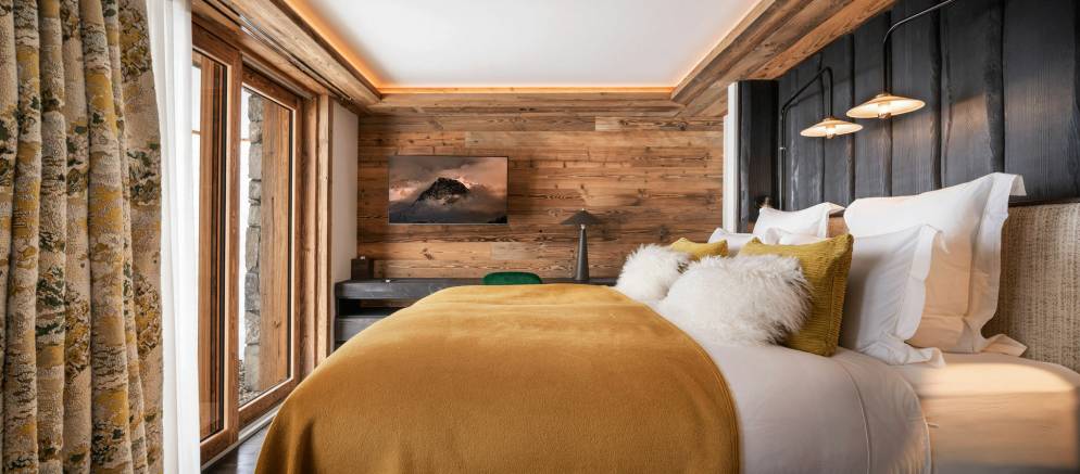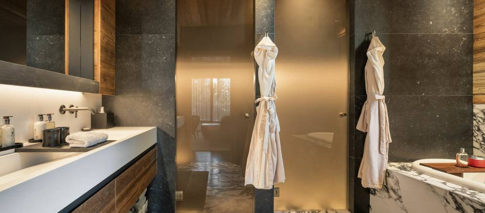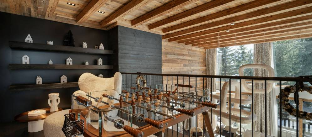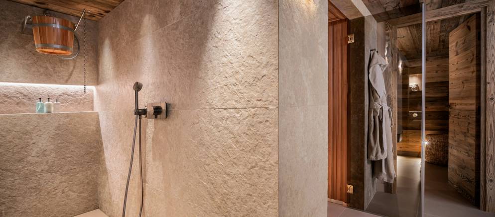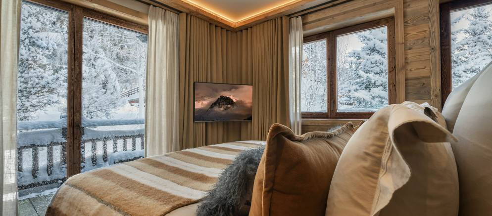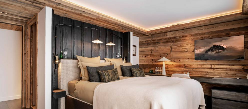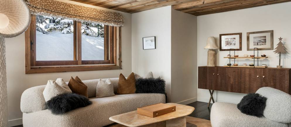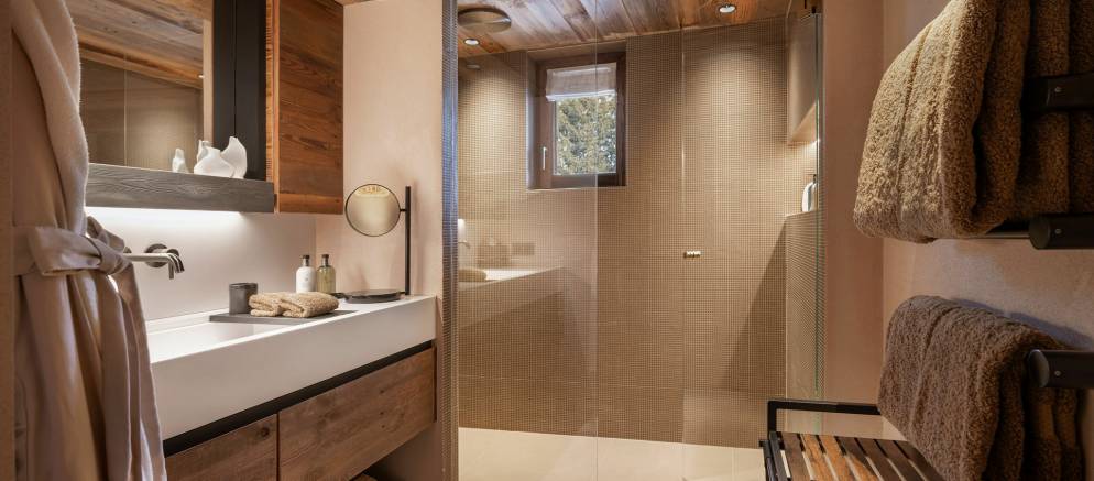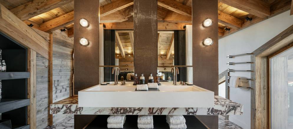 Sleeping up to 15 guests, the eight en-suite bedrooms include luxurious bathrooms and dressing areas. The sumptuous master suite is tucked away in privacy on the top floor and features a sitting area as well as three balconies. A further three double bedrooms on the second floor and four double bedrooms on the ground floor ensure the chalet is designed to host multi-generational families or groups of friends in absolute comfort and privacy.