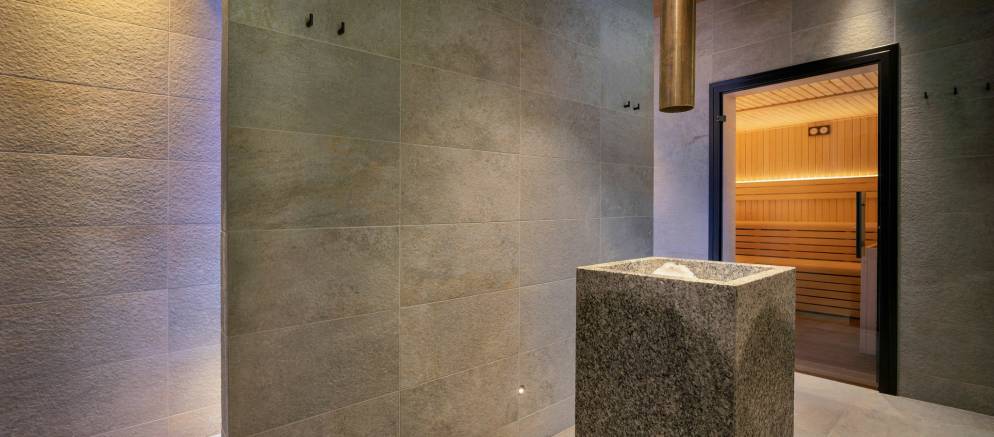 Also on the middle floor are your private spa facilities with an indoor Jacuzzi and sauna, and the property also has a dedicated massage room for private treatments on the lower level.