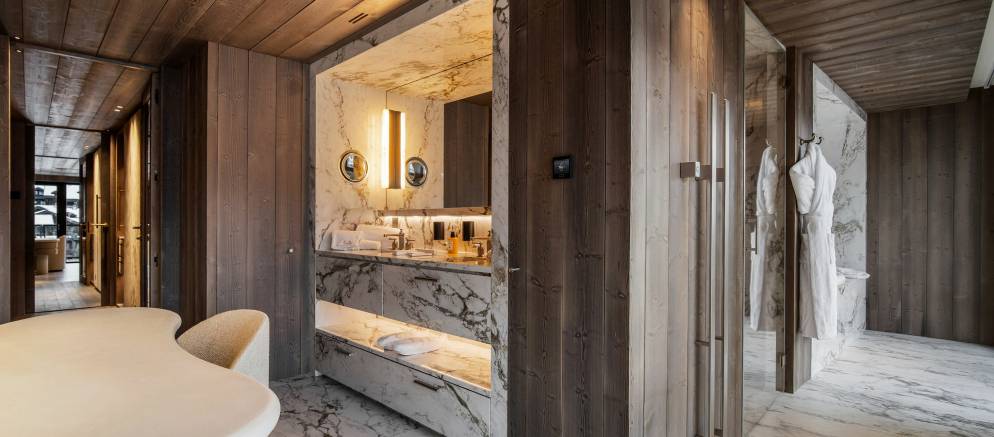 The residence, clad in wood and glass, offers spacious accommodation with a timelessly elegant design that marries traditional chalet architecture and the latest alpine design trends. On the 6th floor of the residence, the Penthouse offers 680m2 of luxury and comfort over three floors and can accommodate up to 12 adults and 3 children across 6 luxurious suites and a children’s bedroom.