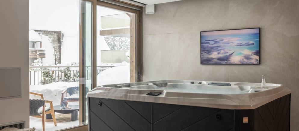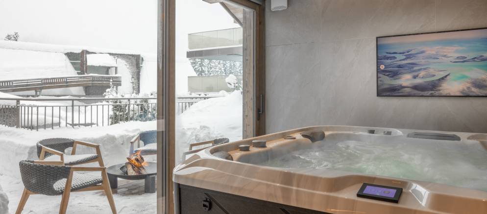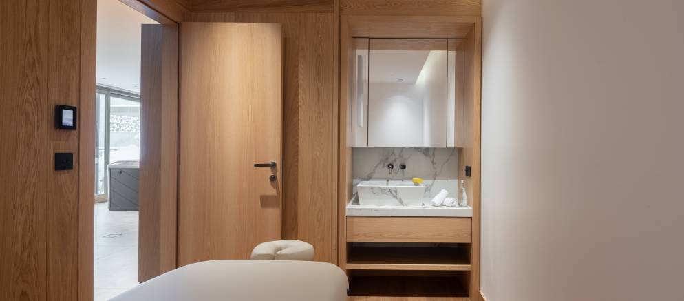 For the 2025/26 winter season a separate annex will be added that is reached by an exterior, uncovered path. In the annex you will find a beautiful private spa with indoor hot tub, hammam, sauna, gym and massage room.