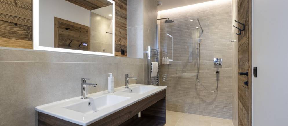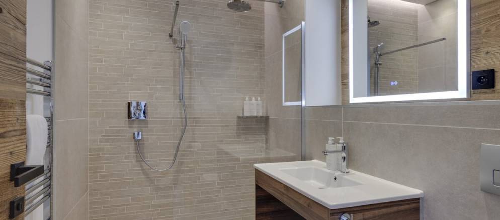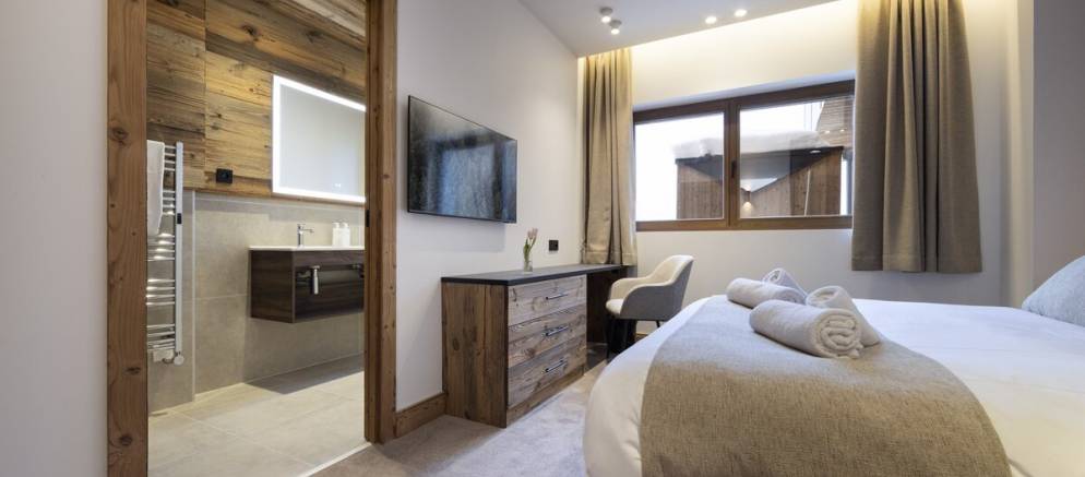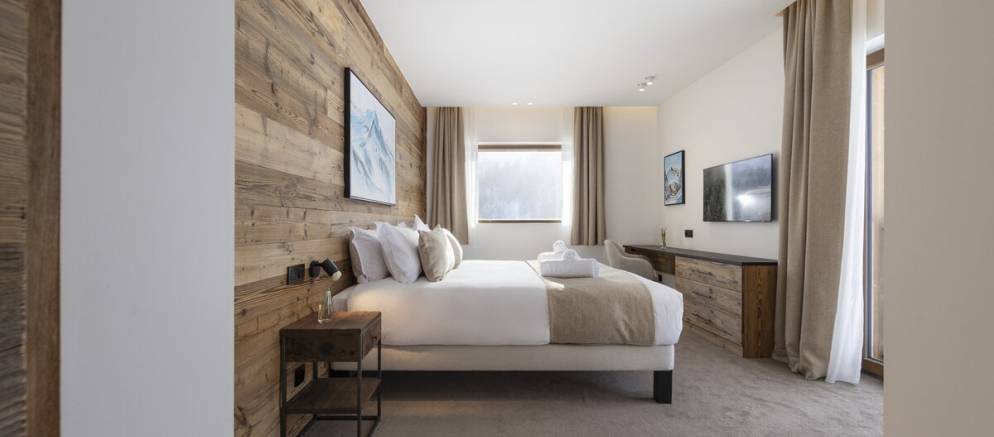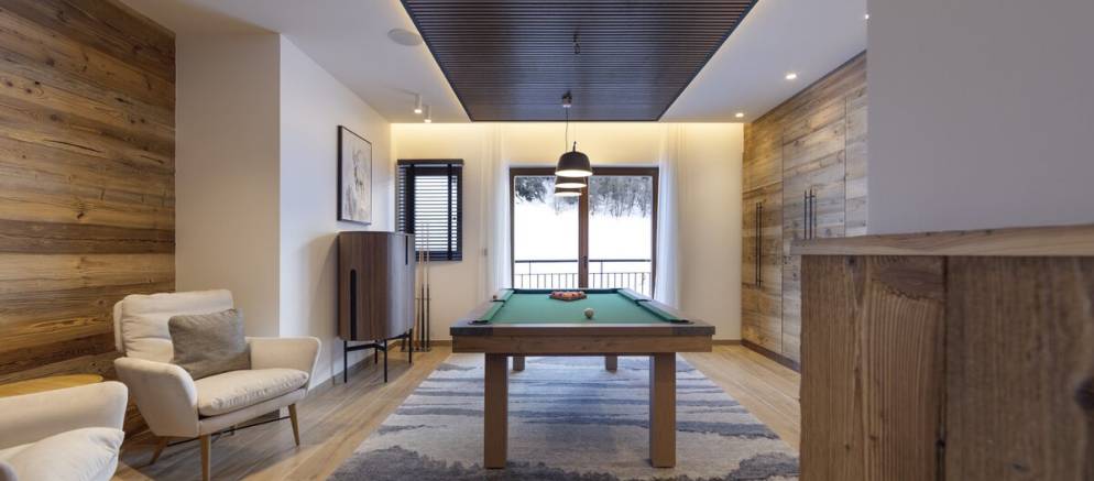 Sleeping up to 15 guests, the Sagarmatha Penthouse features elegantly designed and spacious interiors along with private spa facilities and stunning views of Mont Blanc. The open plan living area is flooded with natural light and mountain views and opens out onto a large balcony. This space is decked out with comfy sofas, an eco-fireplace, discrete lighting and an entertaining area with pool table.