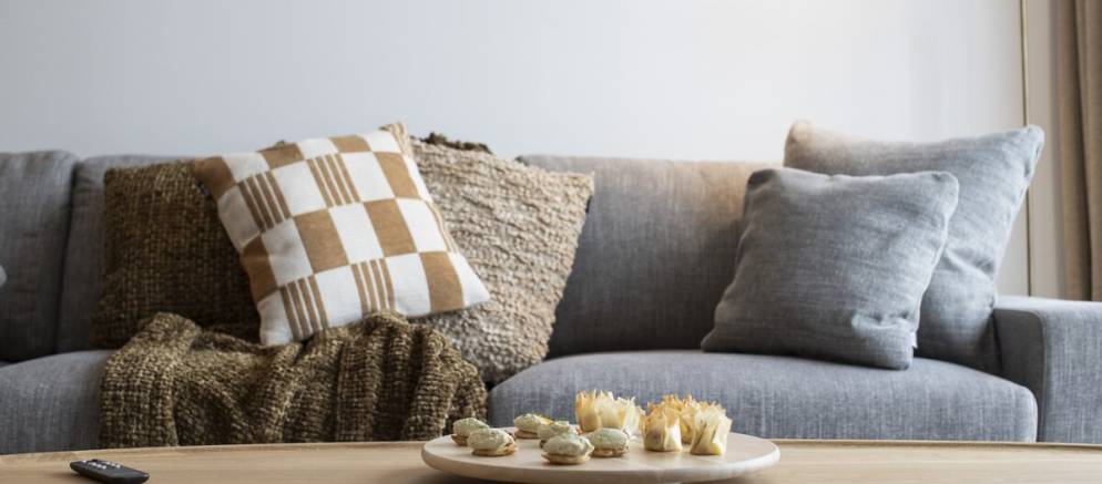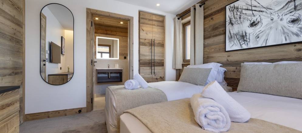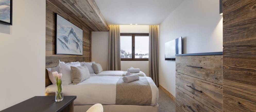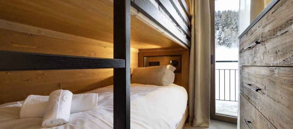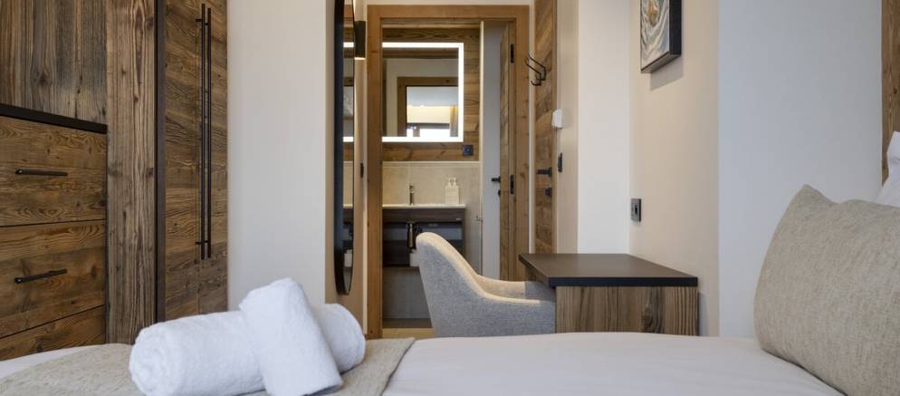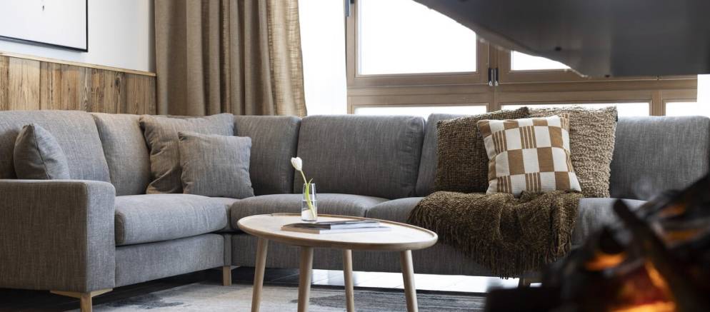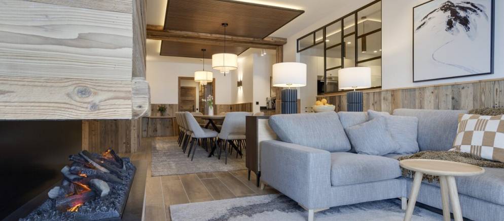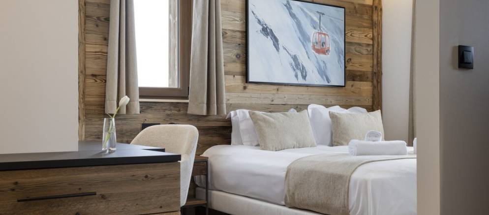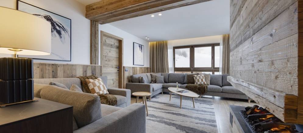 The suite has a spacious and beautifully designed interior with large windows that frame stunning views of the piste and mountain peaks. Once back from the ski slopes of the extensive Paradiski area, sink into your private outdoor hot tub while savouring the stunning scenery. The interior is equipped with cosy sofas, an eco-friendly fireplace, and subtle lighting all complemented by thoughtful touches like USB-C charging at your bedside and warm gloves ready each morning.