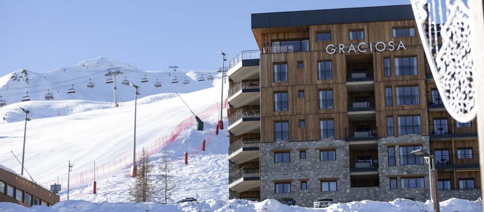 The Graciosa offers ski in ski out access onto the blue Mont St Sauveur piste and from where it is just a quick ski down to the main lift hub of Plagne Centre. From here you have a choice of chairlifts that provide access to an abundance of blue and red slopes, as well as into the expanse of the 225km slopes of the local La Plagne ski area. At the end of your ski day, you can return via the same Mont St Sauveur piste to the ski room.