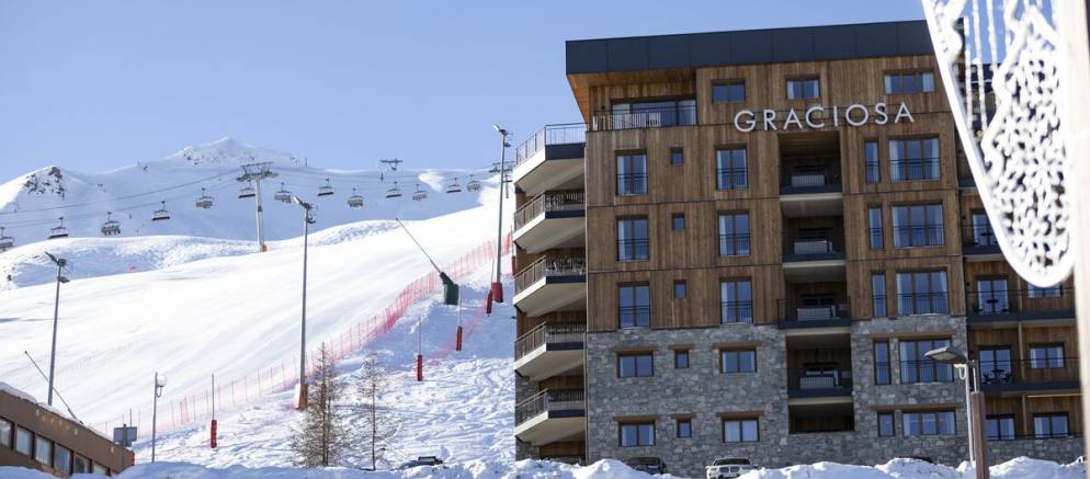 The Graciosa offers ski in ski out access onto the blue Mont St Sauveur piste and from where it is just a quick ski down to the main lift hub of Plagne Centre. From here you have a choice of chairlifts that provide access to an abundance of blue and red slopes, as well as into the expanse of the 225km slopes of the local La Plagne ski area. At the end of your ski day, you can return via the same Mont St Sauveur piste to the ski room.