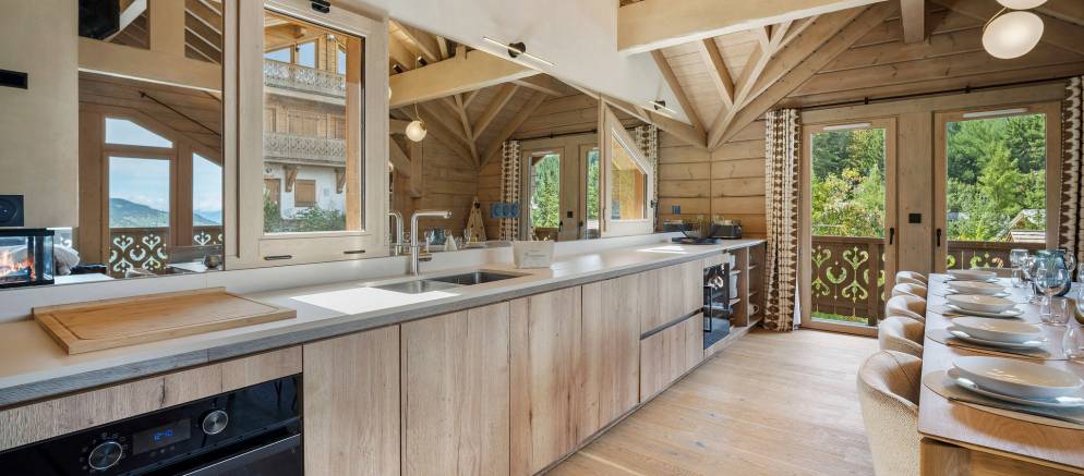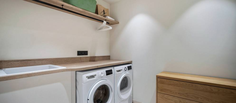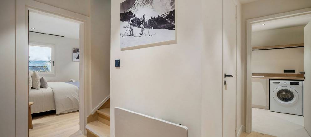 Up on the top floor a spacious living room is enhanced by a central fireplace. The open-plan kitchen, in perfect harmony with the dining room, is ideal for enjoying relaxed moments with friends and family. The balconies invite you to enjoy sunsets after a day on the slopes all enhanced with a pre-dinner aperitif.
