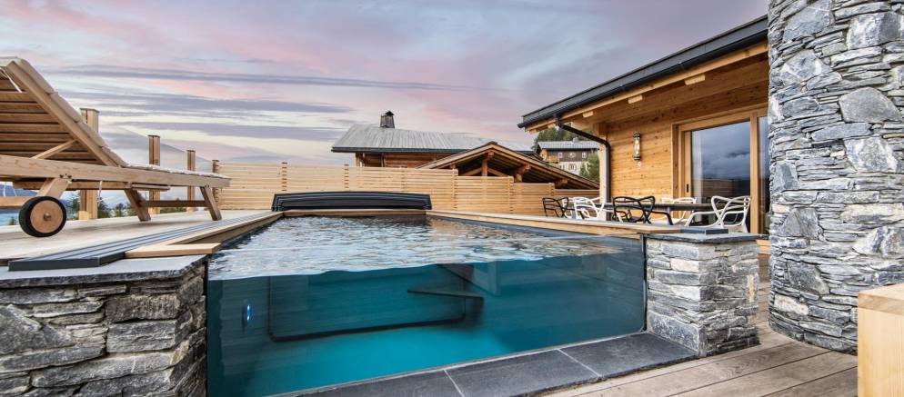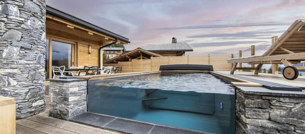 Chalet Bela Vya 1 Ski & Spa is located in the hamlet of Courbaton just below Les Arcs 1600. This striking self-catered chalet offers a peaceful setting with an exceptional mountain panorama the backdrop for your mountain holiday. From this unique setting you can unwind in the extensive outdoor spa area, with swimming pool, sauna and Nordic hot tub, whilst inside simply relax in contemporary comfort.
