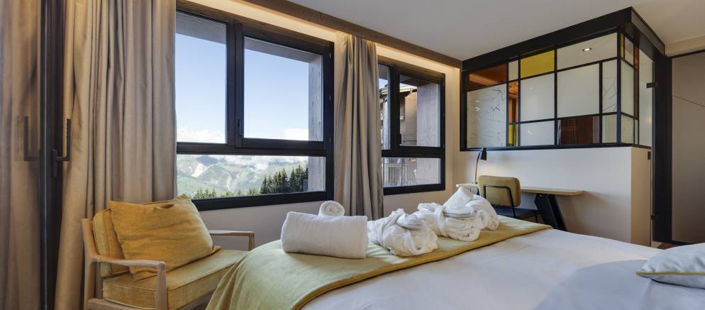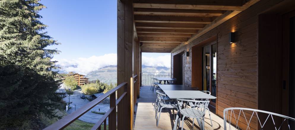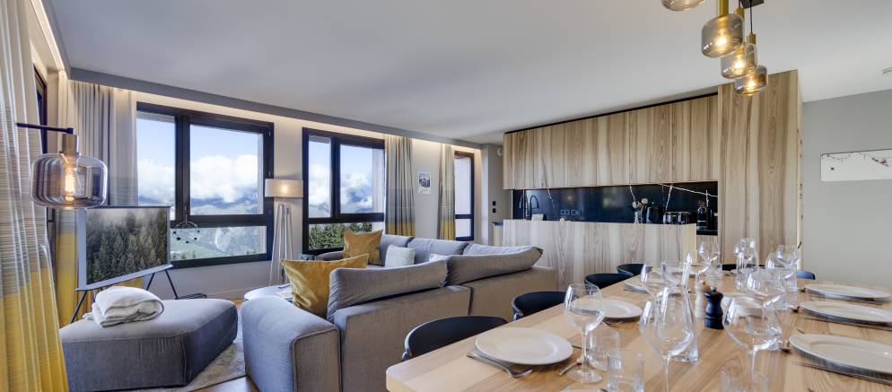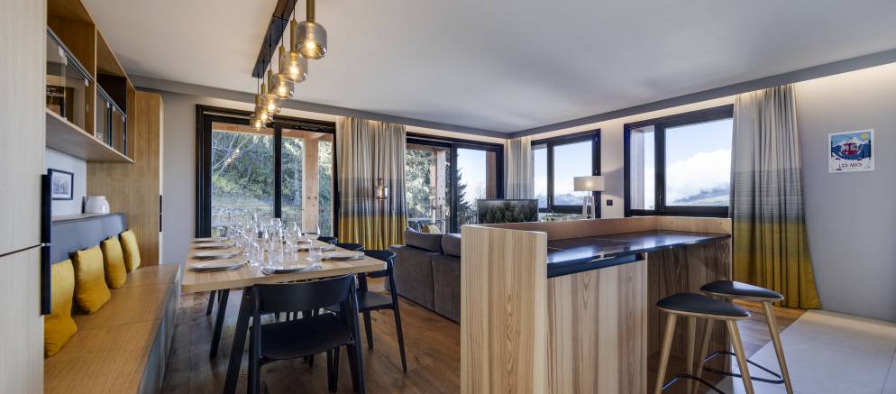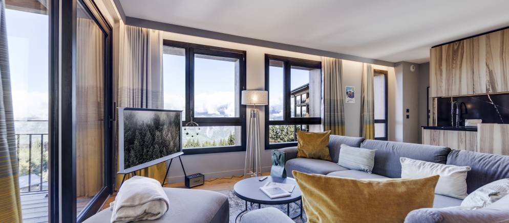 Les Cristaux B10 is a self-catered apartment in the Les Cristaux residence in Les Arcs 1800. Located in the Chantel area of Arcs 1800 the elevated setting affords wonderful views across the Tarentaise valley and resort. This duplex apartment is stylish and filled with natural light, whilst the residence features a shared spa area and direct access to the ski slopes.