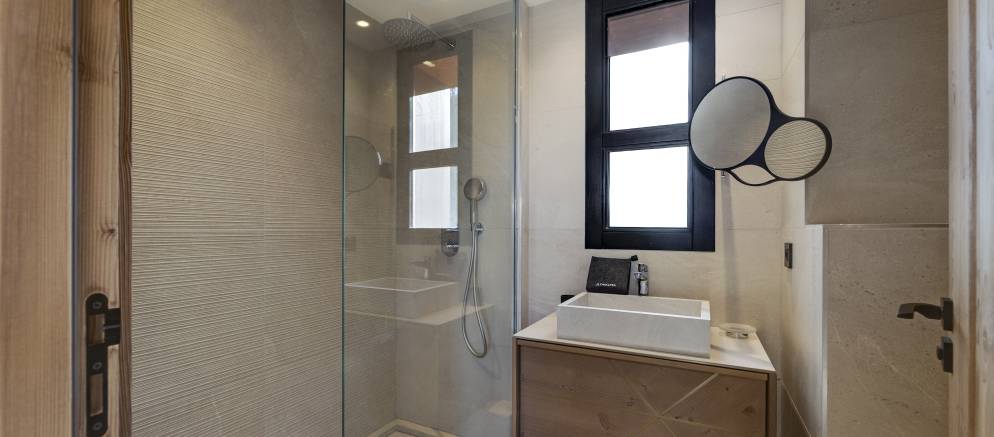 On the lower level are one twin and two double bedrooms all with balcony access. One bedroom has a full en-suite bathroom, whilst the other two have either an en-suite shower or separate shower room, and they share a separate toilet. The final bedroom is on the upper level and has a double bed, balcony access and en-suite shower room.