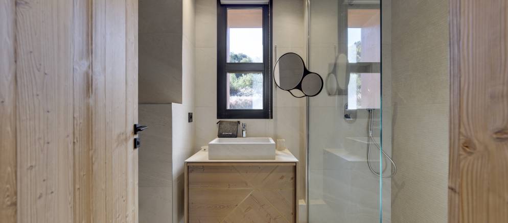 There are three double bedrooms all with balcony access on the lower floor. One of these bedrooms has a full en-suite bathroom, whilst another has an en-suite shower. There is a separate bathroom on this level with a shower and toilet. The final fourth bedroom is back upstairs on the upper level and is a bunk room sleeping 4. There is also a further separate shower room and toilet upstairs too.