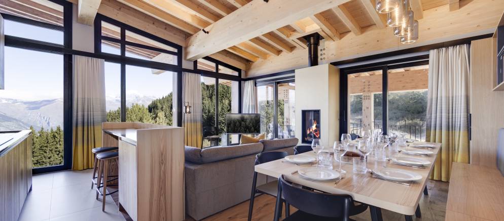 Les Cristaux C33 is a self-catered apartment in the Les Cristaux residence in Les Arcs 1800. Located in the Chantel area of Arcs 1800 the elevated setting affords wonderful views across the valley and Mont Blanc. This duplex apartment is stylish and filled with natural light, whilst the residence features a shared spa area and direct access to the ski slopes.