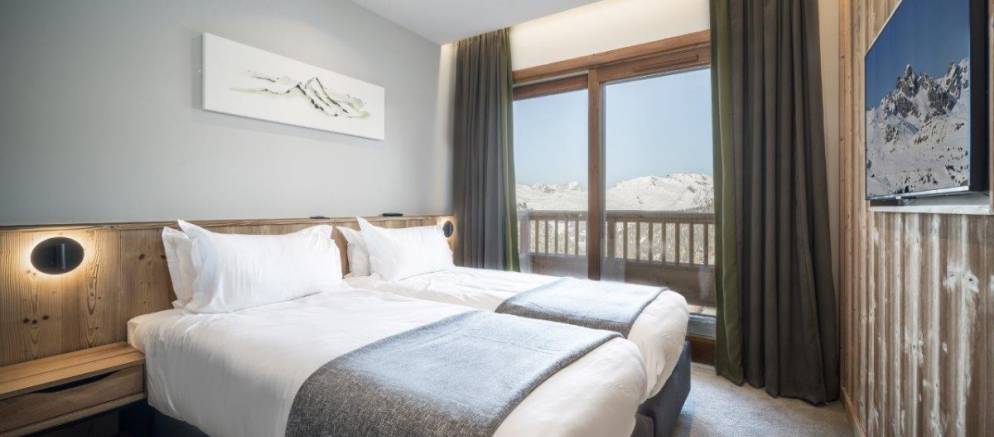 Suite Grizzly is a catered property located on the fifth floor of Bear Lodge. Opened for the 2021/22 winter season, it is at the heart of a new piste side resort in the centre of Arc 1950. It offers the ultimate in slope side convenience with a ski in ski out location on the Baptiste Giabiconi blue piste and is also opposite the Marmottes & Bois de L’Ours chairlifts. In the morning you can head out directly onto the ski slopes from the concierge managed ski room and rental shop.