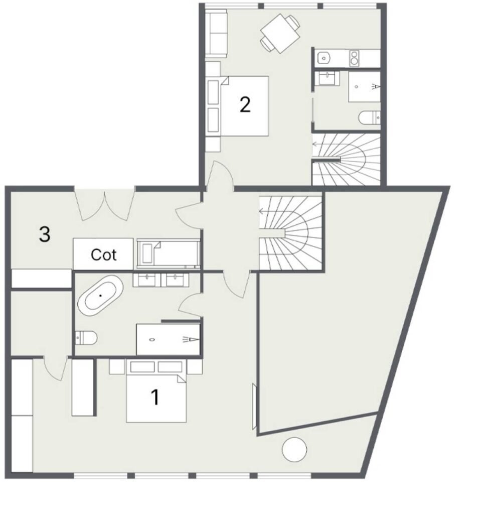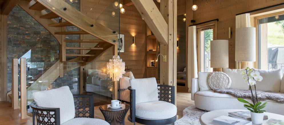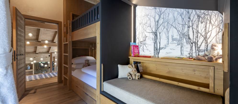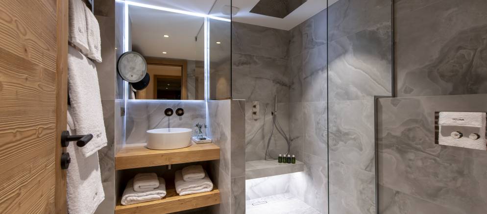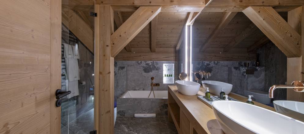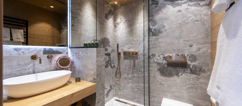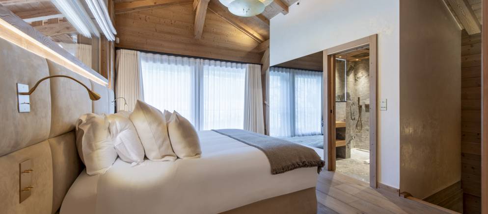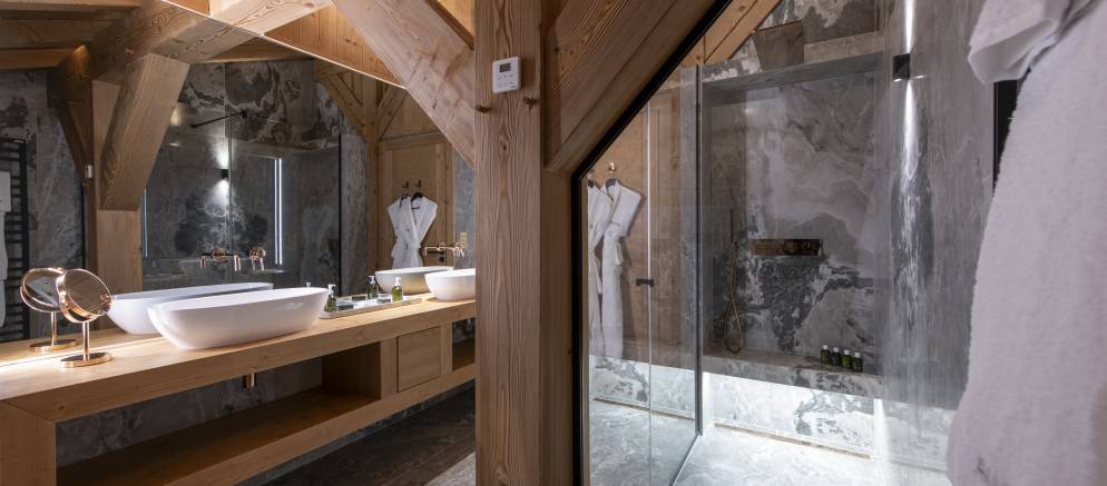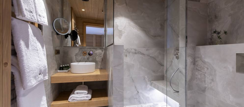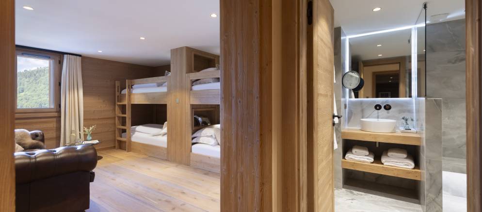 The bedrooms are evenly split between the top and lowest floors of the chalet, with three rooms on each level. The master suite is on the first floor and enjoys the best of the views and features a luxurious en-suite. Next to this there is a second versatile suite which can either be accessed from the main chalet as a guest bedroom, or by an independent entrance.