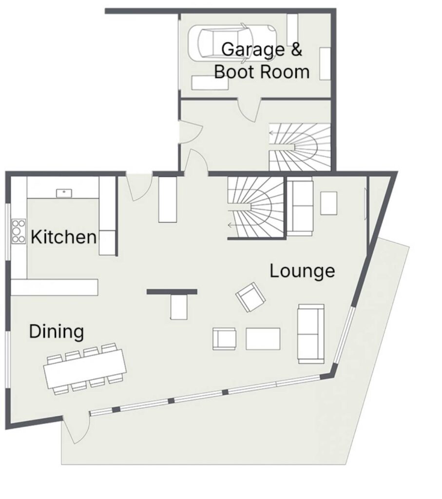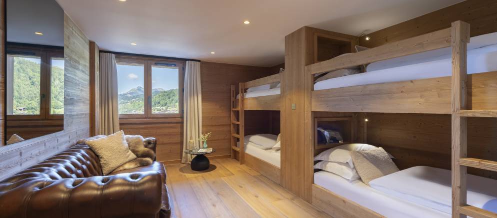 There are a further two twin/double bedrooms on the lower ground level, as well as two bunk rooms which are suitable for use by both children and adults meaning the chalet will suit a wide range of groups. Five of the six bedrooms are en-suite, with only the smaller of the bunk rooms on the top floor sharing facilities with one of the two main suites.