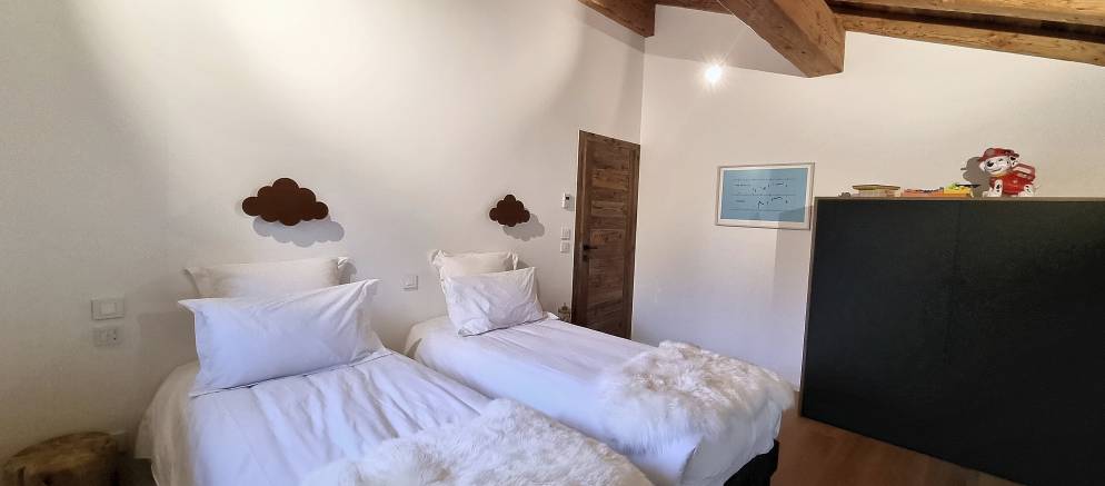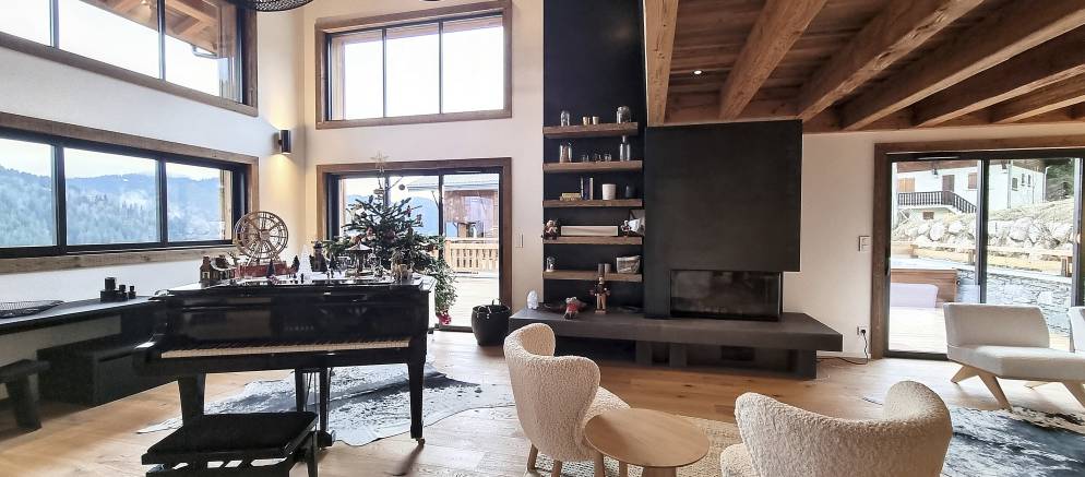 The chalet is arranged across three floors and 410m2 of floor area. The middle floor is given over completely to the communal living spaces with the open plan kitchen, living and dining room offering panoramic views from every window. The wide terrace lets you enjoy the afternoon sun before everyone can come together for evening dinner parties and cosy nights in by the fireplace.