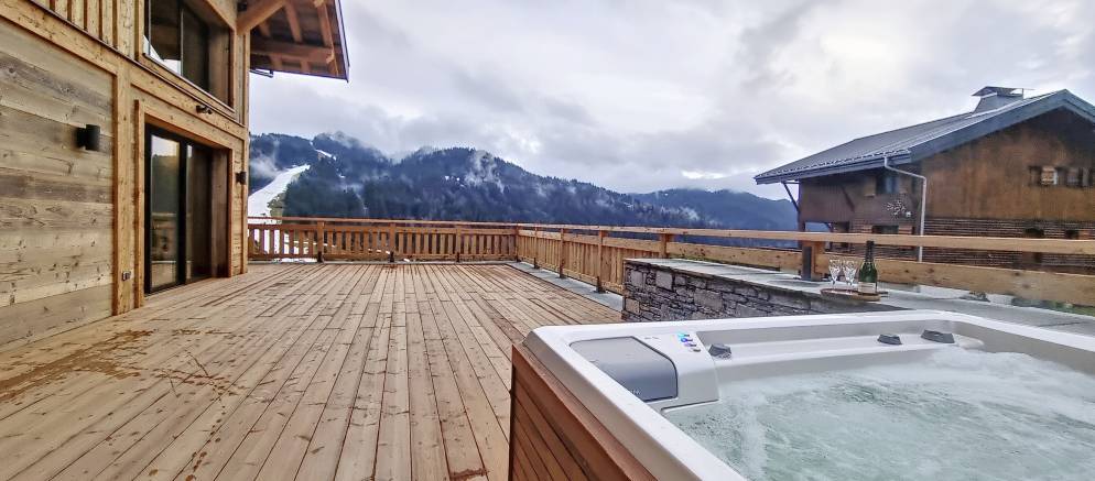 Chalet Caly is a modern self-catered chalet in Les Gets offering stunning views across the village and ski slopes. Completed in 2022, this is a wonderful chalet for large groups and several families to holiday together in the French Alps. The elevated setting above Les Gets provides for a private mountain experience best enjoyed from the outdoor hot tub after a day’s skiing.
