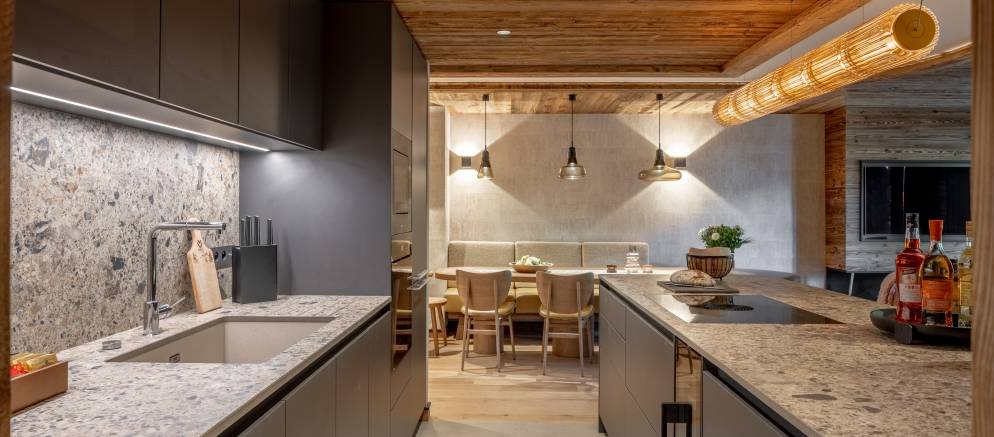 Once back from the ski slopes, especially during the colder months in the depths of winter, you will surely appreciate the warmth of the sauna. There is also a cinema room for cosy movie nights, and this is a great additional space for any family groups. A dedicated laundry room is also available for guest use which is always handy, especially if travelling with young children.