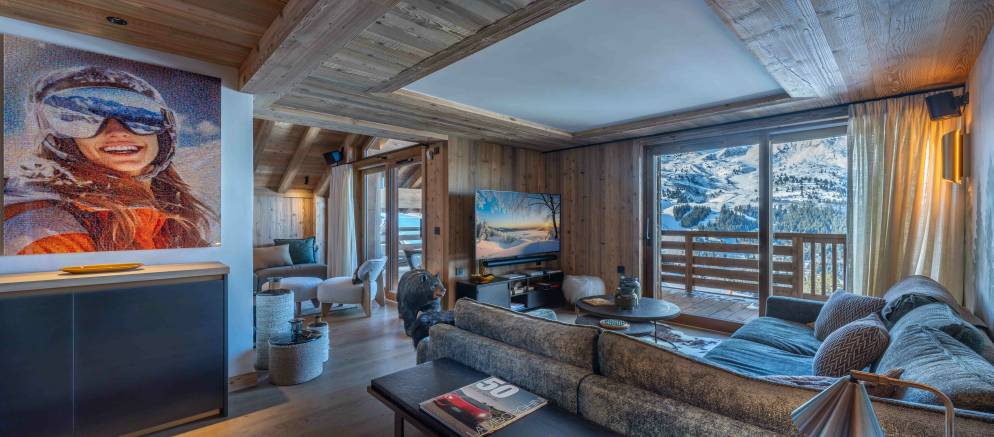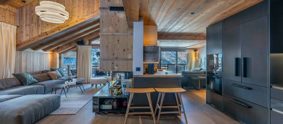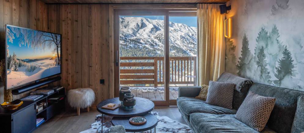 Bois des Ours 701 is a superb duplex apartment designed full of alpine elegance and thanks to its elevated setting, wonderful panoramic views across the Meribel valley. The property has been designed to offer a truly charming mountain retreat that echoes the authenticity of a mountain chalet with high-end comfort and design touches.