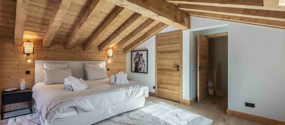 Sleeping 10 guests there are five bedrooms. On the top floor is the spacious master double bedroom with private balcony and en-suite with both a bath and shower, plus a toilet. The remaining four bedrooms are on the first floor with three twin/double bedrooms with en-suite showers, and a further twin bedroom with an en-suite shower room with toilet. There are 3 separate toilets throughout the chalet.