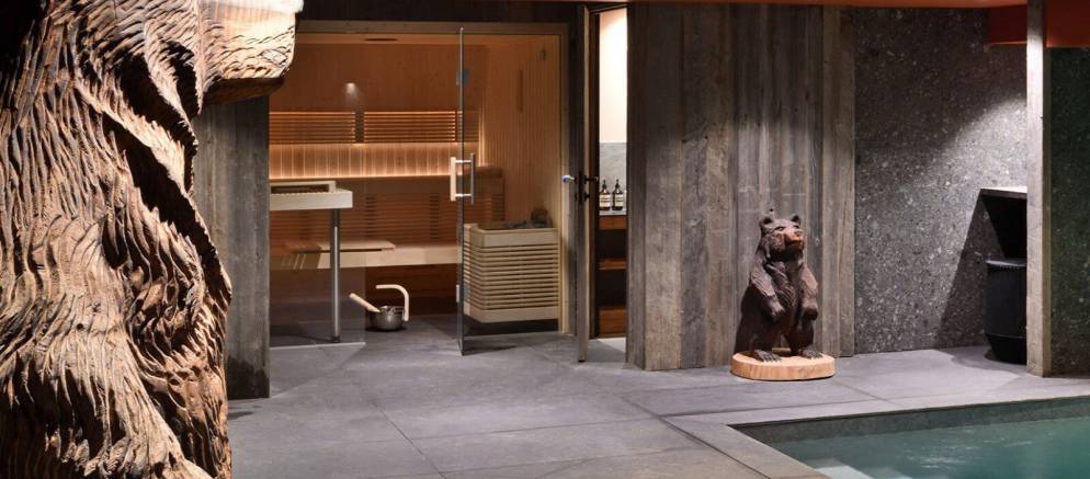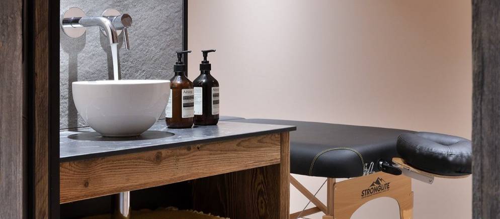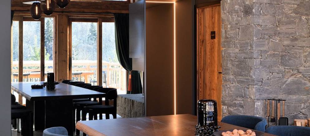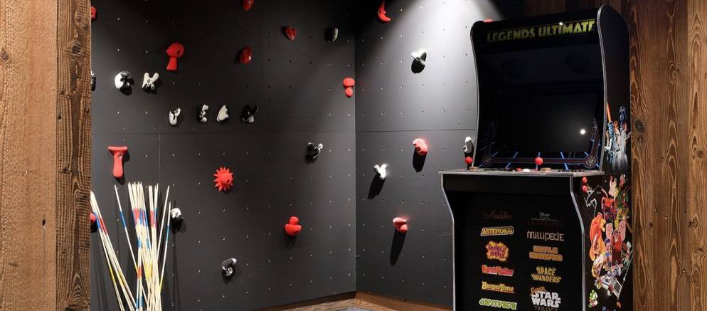 On the ground floor, this entire space is dedicated to wellness and entertainment. The private spa area is equipped with everything for rejuvenating after a day exploring the mountains with an indoor heated swimming pool, sauna, ice shower, massage room and fitness room. Once refreshed, entertainment can be enjoyed in either the TV room with PlayStation 5 or games room with climbing wall, retro gaming console, pinball machine, foosball and board games.