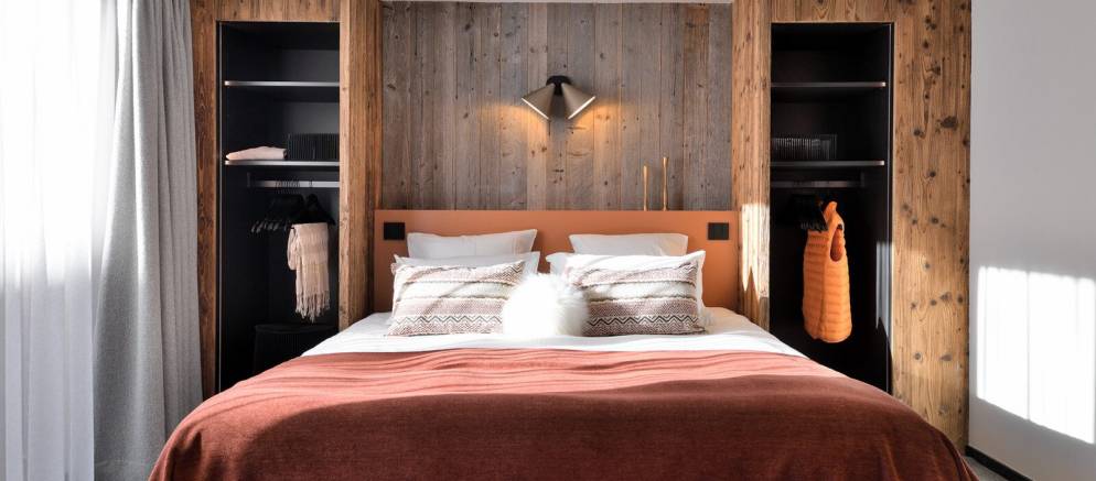 Up on the top floor are the final two bedrooms. Sitting beneath the roof, these bedrooms offer a cocooning haven of wood and subtle colours. There is a double bedroom with en-suite bathroom, along with a family room with double bed and bunk beds than can accommodate 2-4 guests. All the bedrooms are tastefully decorated, enhanced with high quality materials and fabrics.