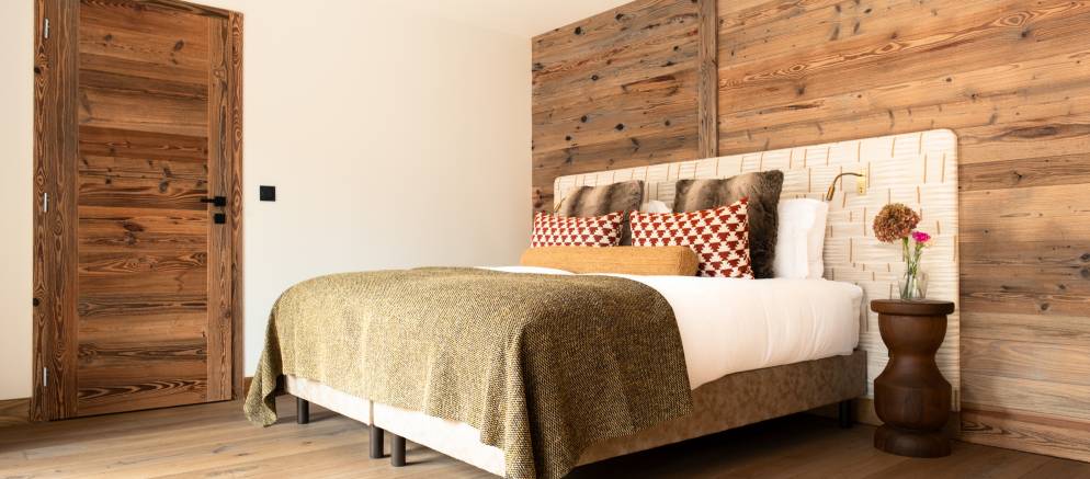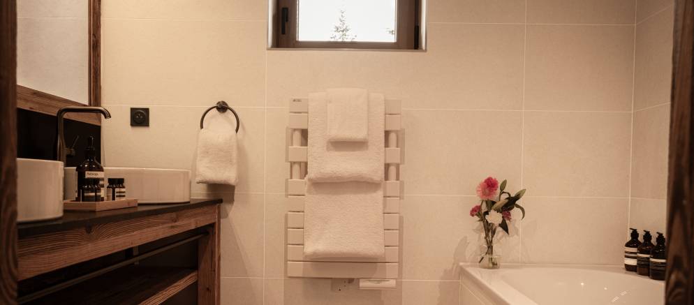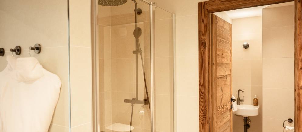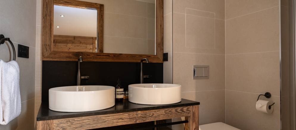 The chalets six bedrooms are spread evenly between the middle two floors. There are three double and three twin or double bedrooms ensuring great flexibility for different group configurations or several families looking to holiday together.