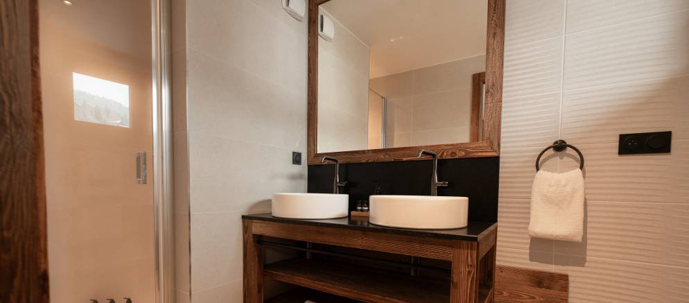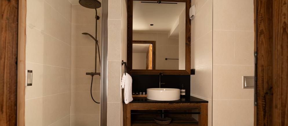 The chalet is arranged over four floors and 309m of floor area and can accommodate 12 guests in six en-suite bedrooms. On the top floor and sitting beneath the impressive grand wood roof are the open plan living spaces. This floor can be considered the heart of the chalet where your friends and family can all come together after their day on the ski slopes of the 3 Valleys.